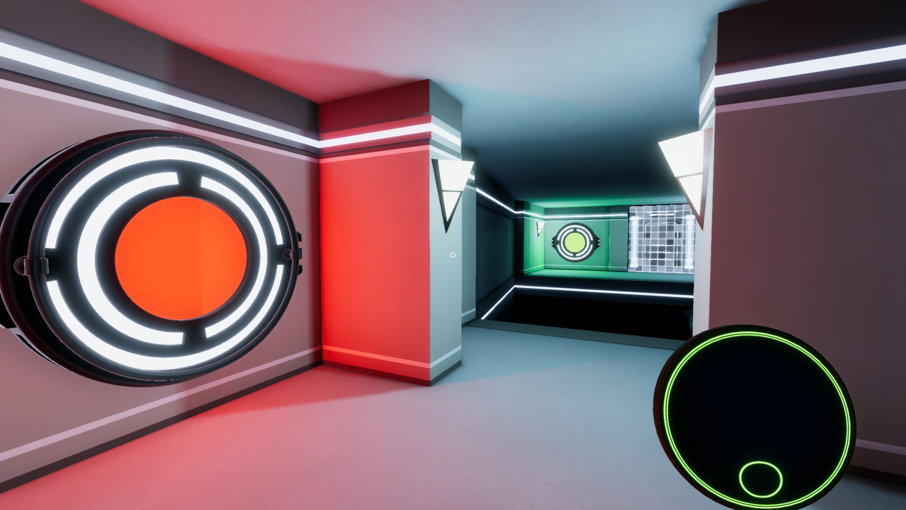 En The Spectrum Retreat, como decíamos, vamos a jugar con el color. Nuestro extraño teléfono circular puede absorber el color de unos cubos presentes en el escenario, transportarlo y transferirlo a otros cubos. Esto permitirá habilitar y deshabilitar puertas y pasarelas que nos separan del final de cada nivel. Como os podéis imaginar, la cosa se irá complicando, con escenarios cada vez más exigentes y más colores que utilizar.
