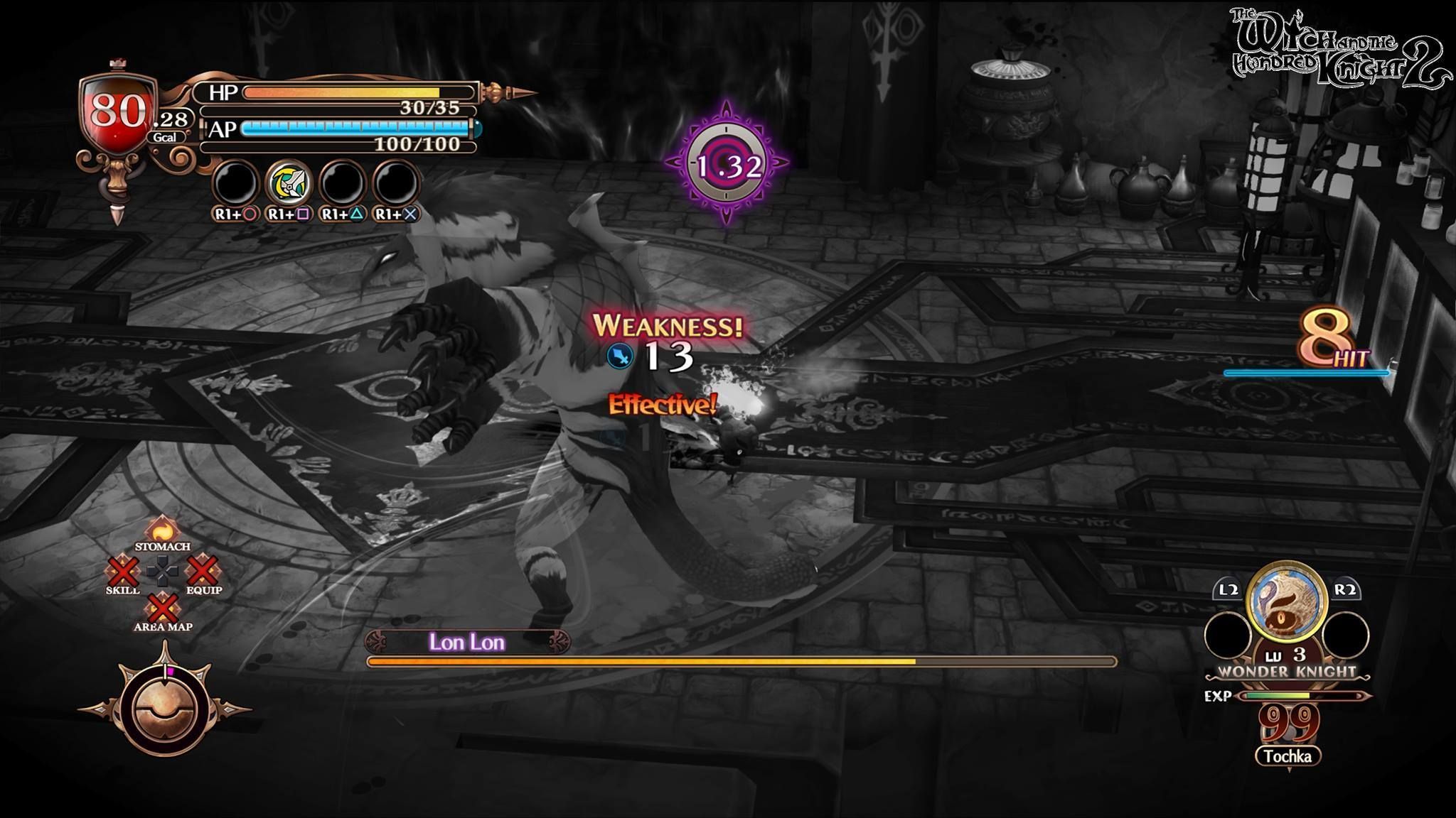 La historia no tiene relación con el primer juego, salvo el regreso de nuestro personaje –el Hundred Knight-. El tono general es parecido a aquel, y eso es algo que nos ha decepcionado. Un aspecto habitual en los juegos de NIS es el humor, pero cuando queda descartado –por ejemplo en la saga de terror Yomawari-, es fácil conectar con los protagonistas. En The Witch and the Hundred Knight 2 hay muy pocos personajes que nos agraden, la historia se toma demasiado en serio incluso cuando es un cuento bastante tontorrón que no sabe encontrar su espacio entre el drama y la aventura ligera. La propia jugabilidad queda entorpecida por unos densos diálogos que aportan muy poco al juego o al carisma de los personajes.