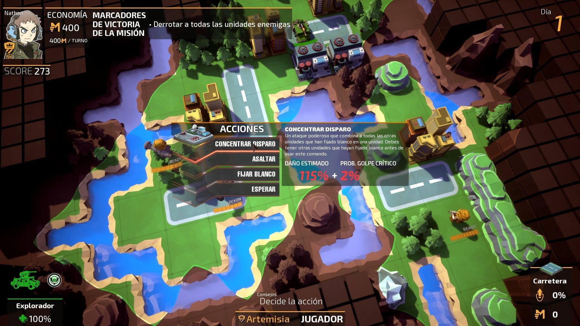 Con un rápido vistazo a las capturas del juego podemos ver que el estilo adoptado es la estrategia por turnos, y que no busca realismo ni crudeza. Las unidades –realmente grupo de unidades- se desplazan una cierta cantidad de casillas por el mapa según su movilidad. Al igual que en los SRPG, el objetivo es mover estos equipos por el mapa, acercarse a un rival y atacar. Hay contraataques, lo que significa que normalmente recibiremos daño al abrir fuego, pero la ventaja es para el grupo que ataca primero.