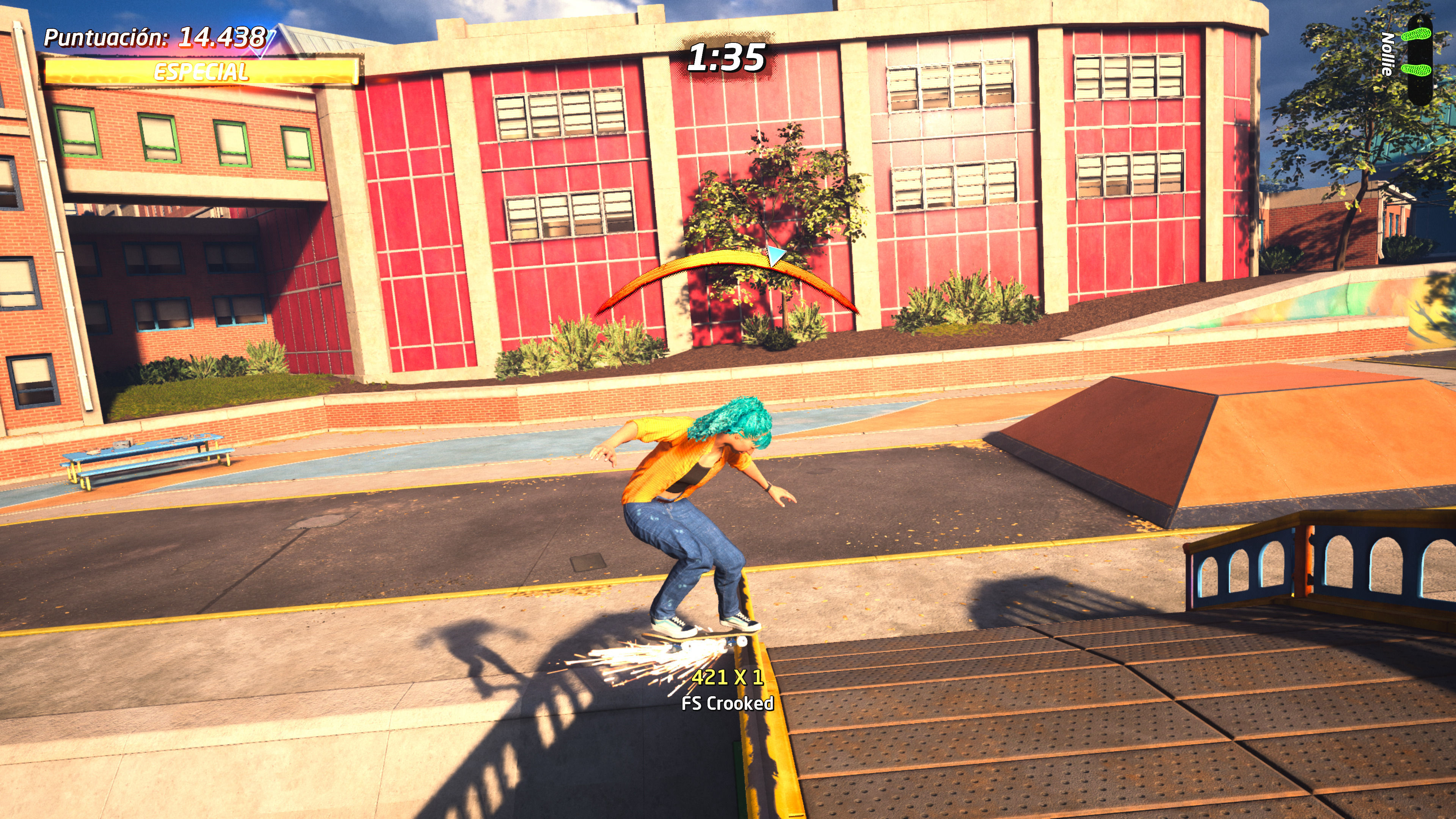 El detalle de los patinadores es fantástico, no sólo en su apariencia, sino también en las animaciones. Se han introducido muchas más animaciones que hacen que todo sea más fluido y natural, e incluso vemos algunas específicas para ciertos golpes. En general, todo está cuidadísimo, y echamos de menos que no se haya introducido un modo foto para poder apreciar el fantástico trabajo hecho por los desarrolladores. Por si fuera poco, todo se mueve a 60 imágenes por segundo muy estables, aunque al pasar al modo multijugador a pantalla partida la tasa se divide y, por si fuera poco, pasa a ser algo más inestable.