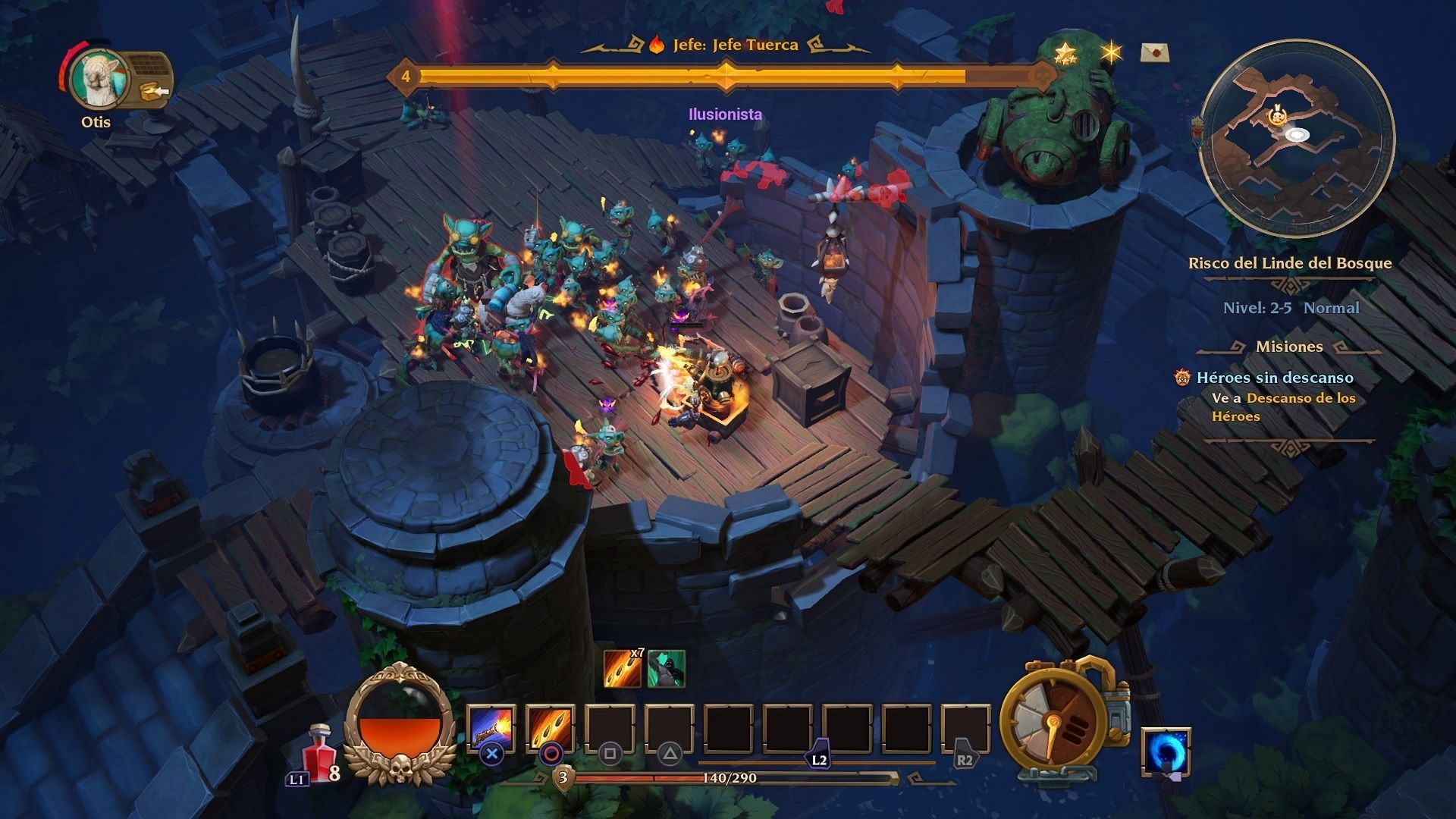 Lo primero que debemos hacer es seleccionar a nuestro personaje, opción que se convierte en uno de los puntos fuertes que alberga esta propuesta por las interesantes posibilidades que nos ofrece. Podemos elegir entre cuatro clases bien diferenciadas (Tiradora de Precisión, Mago Crepuscular, Forjado y Maestro Maquinista), gozando todos ellos de aptitudes, armamento y capacidades exclusivas. Pero lo mejor de todo es que después se nos permite escoger una reliquia mágica determinada para nuestro personaje (destrucción flamígera, succionasangre, etc.), lo cual dota a nuestro héroe de un árbol de aptitudes único. Y como ya imaginarán los seguidores de esta franquicia, por último también nos toca elegir a nuestra mascota aliada (alpaca, perro o búho), la cual nos ayuda a lo largo de toda la aventura a confrontar a las oleadas de goblins, esqueletos y demás criaturas que salen a nuestro paso.