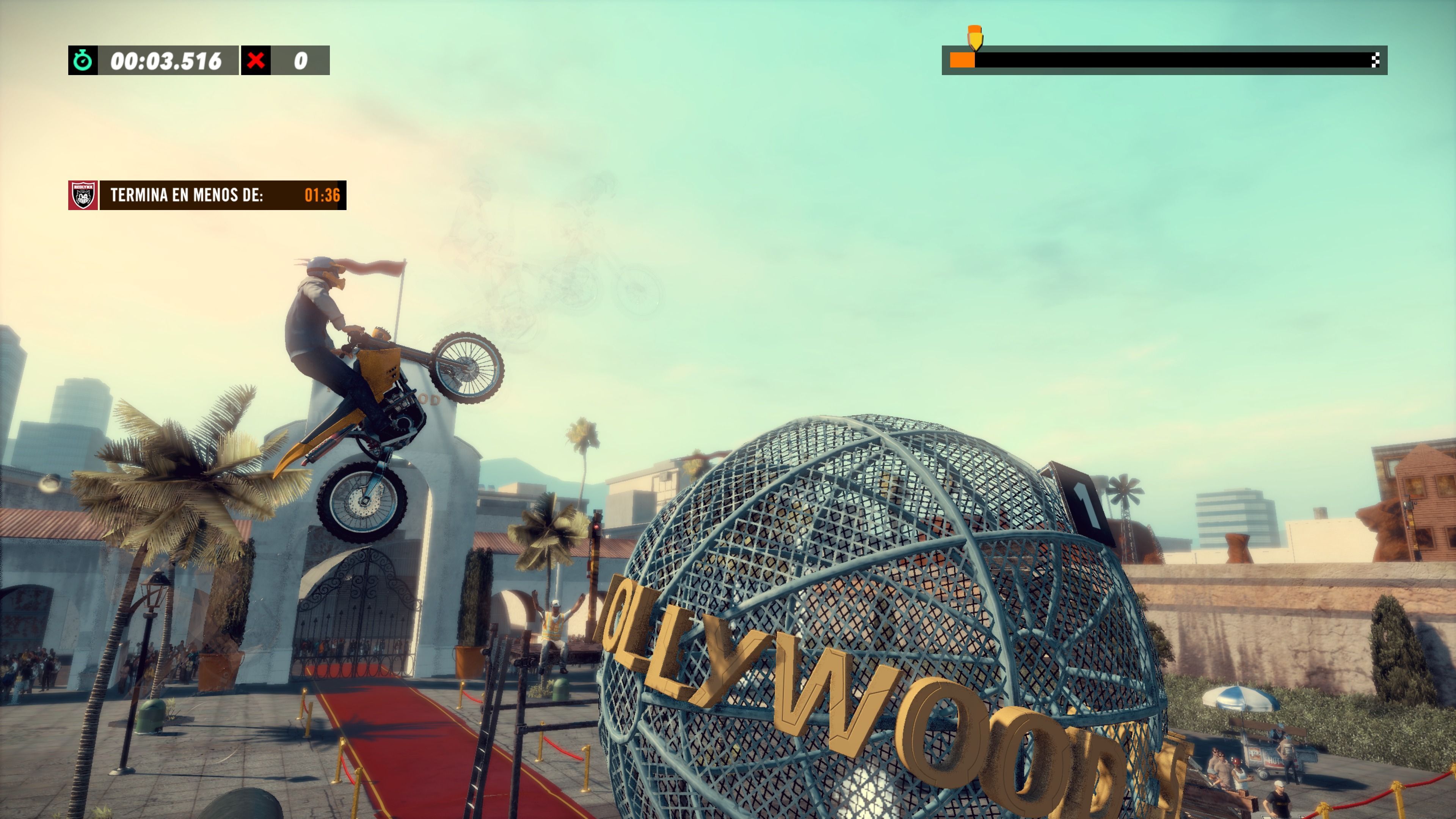 Tenemos, por una parte, el modo carrera, en el que vamos completando niveles de dos maneras: con la contrarreloj tradicional o con los «contratos», que son un pequeño desafío. Pueden ir desde no reiniciar más de un número determinado de veces a hacer cierta cantidad de volteretas. Es una manera interesante de exprimir los circuitos y darle variedad al desarrollo. Aparte, tenemos pruebas especiales, como intentar llegar lo más lejos posible cayendo sobre barriles explosivos.