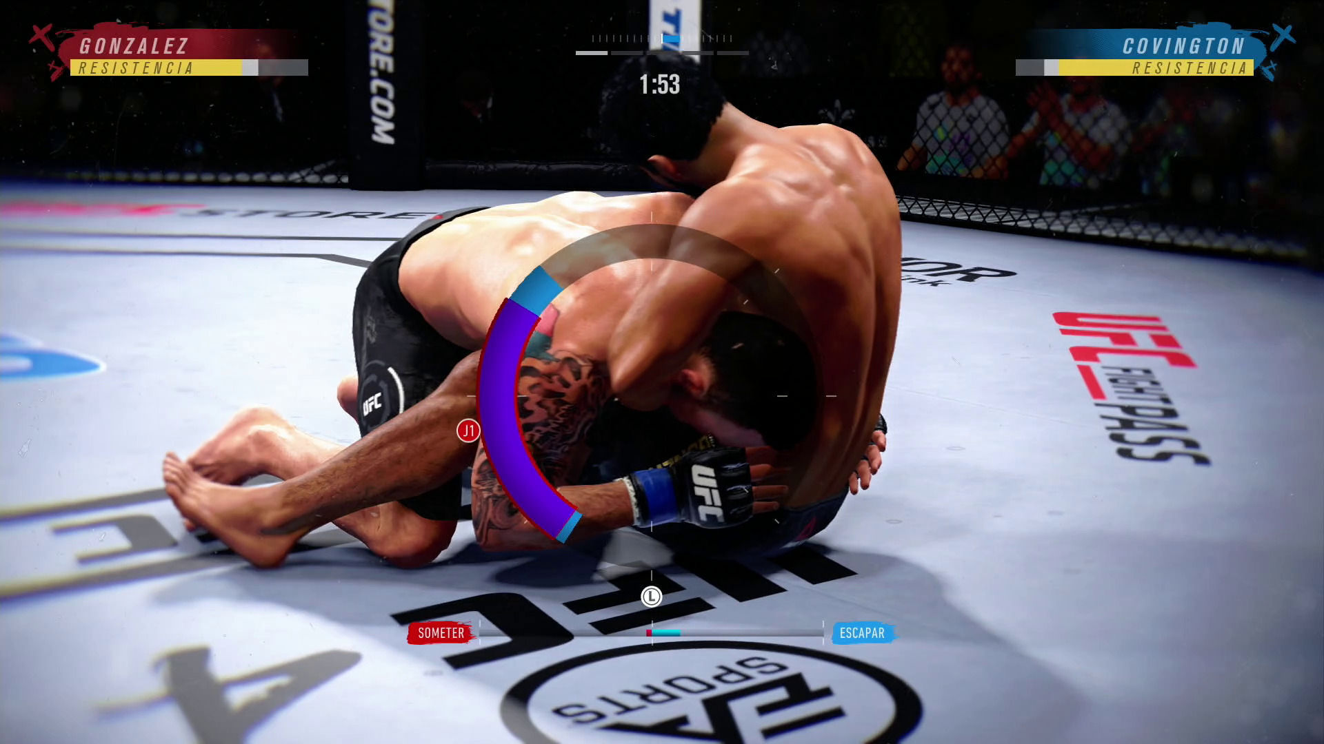 Otro aspecto que cambia son las ejecuciones de las sumisiones que esta vez se llevan a cabo con dos minijuegos bastante más acertados que en entregas anteriores en los que, a fin de cuentas, tendremos que perseguir en la pantalla el movimiento del rival para permanecer sobre él e ir finalizando la sumisión o escapando de ella. En algunos aspectos estas ejecuciones de las sumisiones nos han recordado a lo que hemos podido ver en algunas entregas de WWE.
