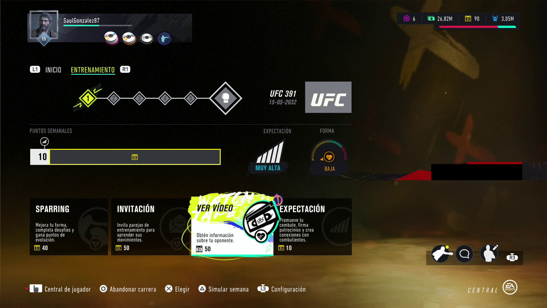 Ya profundizando en el modo Campaña en sí, en esta ocasión iremos aceptando combates, preparándonos para ellos con diferentes sparrings y también prestando atención a hacer promociones de los eventos para incrementar nuestra popularidad. Además también deberemos de mejorar nuestras relaciones con otros luchadores a través de las redes sociales para invitarlos a nuestro gimnasio y aprender nuevos movimientos para nuestro experto en MMA.