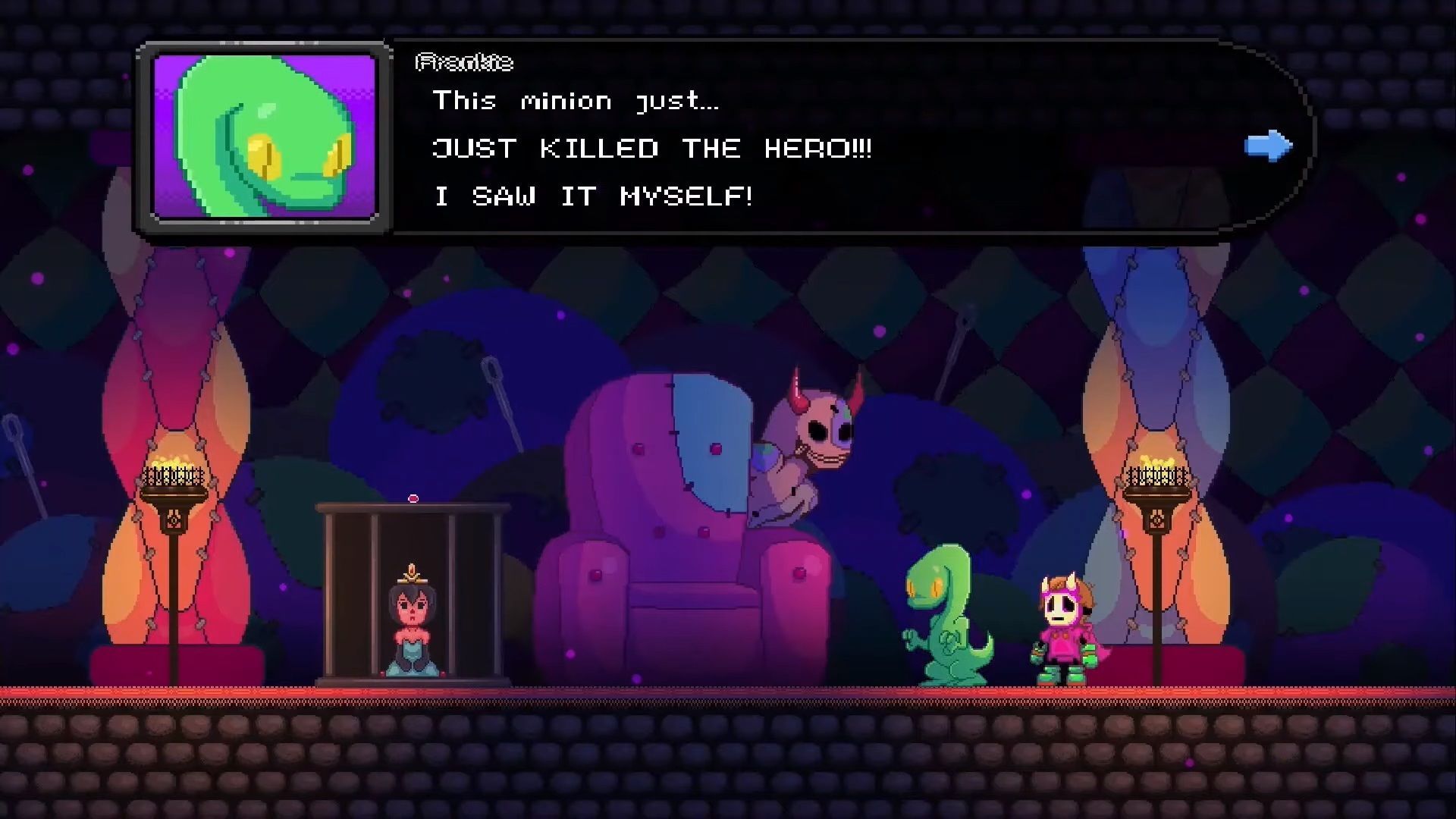 Una obra que como podéis comprobar goza de una apariencia visual tan tradicional como muy atractiva y, lo más importante, un sistema de juego que es capaz de enganchar a prácticamente cualquier tipo de jugador. Y además de esto, también es justo señalar que se trata de una producción que ha sido bendecida por un sentido del humor más que notable. Y esta característica salpica a todos los aspectos que acapara esta aventura, incluyendo su disparatada narrativa. Todo comienza cuando el típico héroe (quien, por cierto, presenta un nivel 99 en todas sus estadísticas) llega a la guarida del malo de turno, una criatura llamada Mr Stitches en este caso. Un héroe que…¡es abatido por un pequeño minion insignificante! Un subordinado que se convierte justamente en el protagonista de esta aventura, un curioso personaje que tiene la misión de devolver unas piedras especiales obtenidas por el héroe tras disputar un combate contra sus correspondientes dueños, es decir, los jefes finales. Un viaje que puede durarnos unas 15 horas por lo menos, una cifra más que significativa que puede aumentar bastante en función de lo que queramos entretenernos durante nuestro periplo.