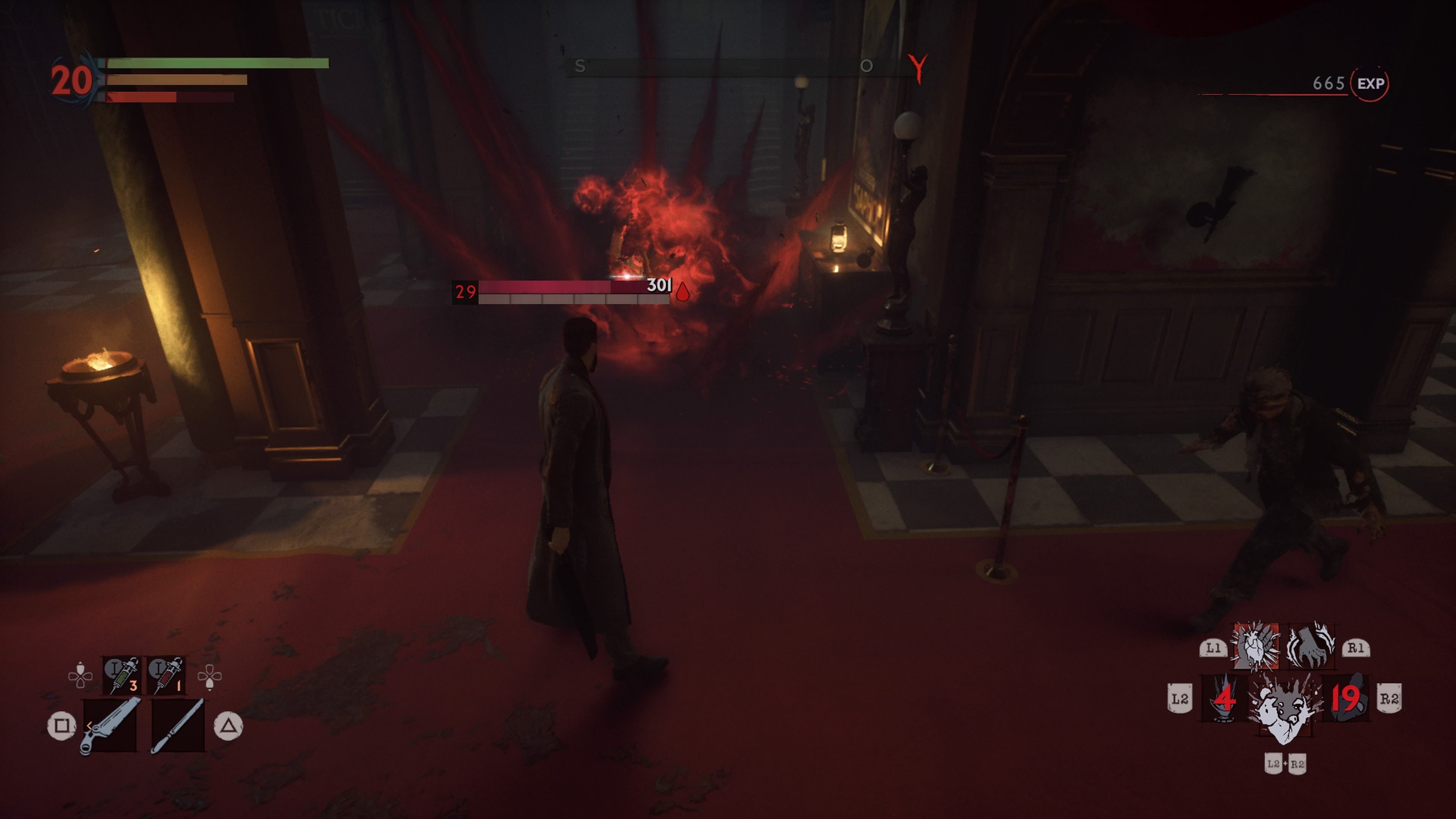 Aquí las batallas se desarrollan en tiempo real y nos permiten tener equipada un arma en cada mano (una principal y otra secundaria, aunque también podemos optar por una de dos manos), así como cuatro poderes vampíricos y un ataque definitivo con un enorme tiempo de recarga. La mayoría de estas habilidades nos requerirán gastar sangre para utilizarlas, mientras que los ataques con armas cuerpo a cuerpo y las esquivas nos obligarán a invertir parte de nuestra barra de resistencia, la cual se recupera rápidamente cuando no la usamos.