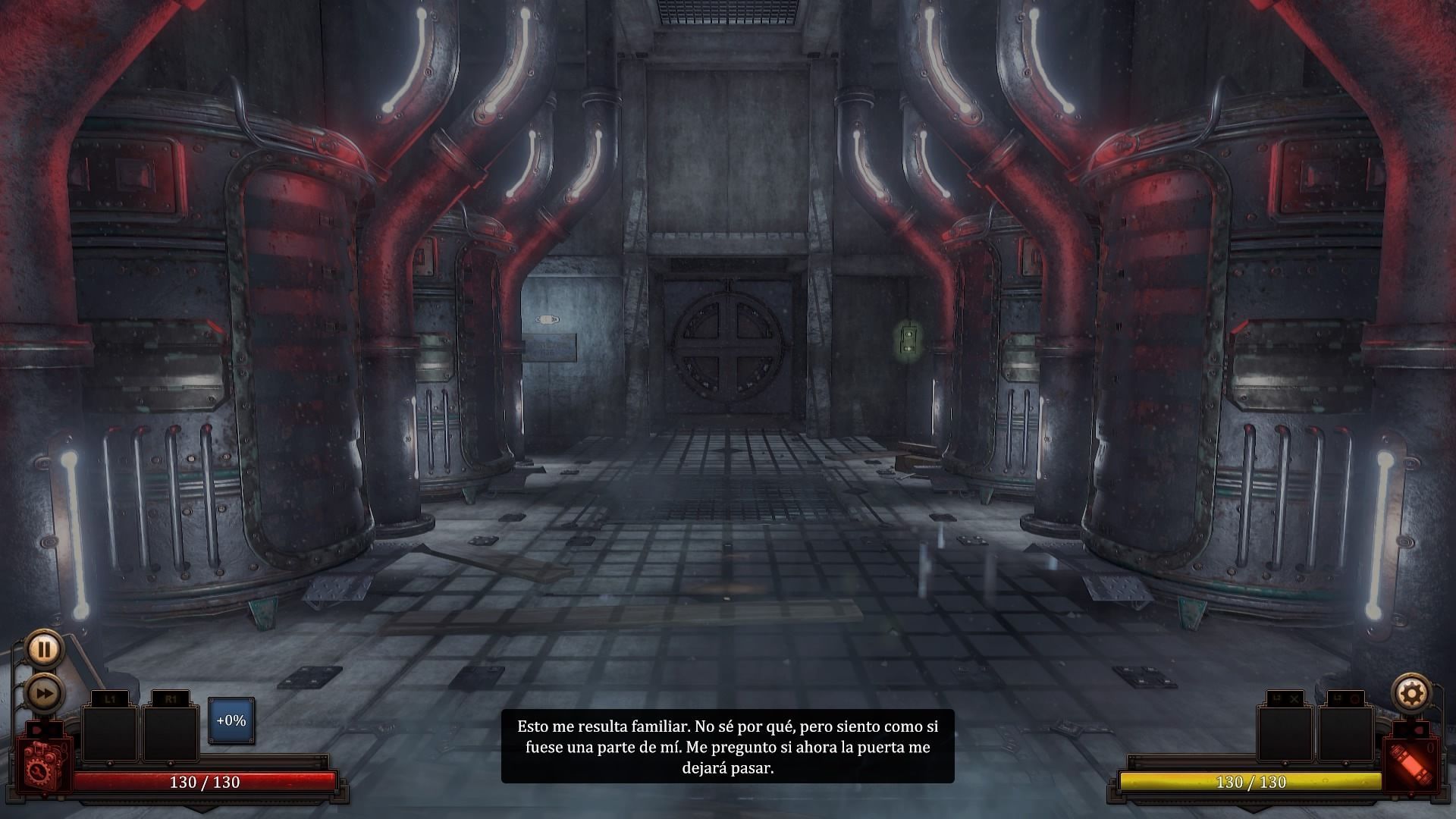 Su adaptación a consolas también es muy decente, incluyendo incluso algunas opciones gráficas de configuración -podemos activar o desactivar filtros a la imagen, incorporando más antialias o menos, adaptando el movimiento del personaje o la oscuridad de la pantalla-, permitiéndonos la adaptación al gusto de la experiencia visual. En términos de sonido, y aunque tampoco hace demasiados alardes sonoros, el videojuego consigue desprender su propia atmósfera, metálica y asfixiante, con un doblaje al inglés que nos ha parecido notable. El videojuego está traducido al español a nivel de texto.