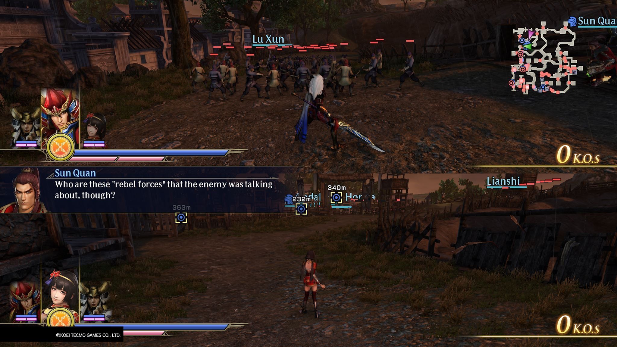 Gráficamente el juego está más inspirado que la media de los musou, y con el regreso a zonas amplias -pero no un mundo abierto- logra que mantenga una tasas de imágenes por segundo con una media superior que Dynasty Warriors 9. En la versión probada, aunque el framerate varía según el lugar y cantidad de enemigos, nunca bajará a mínimos molestos –si bien rara vez alcanza los 60fps-. Claro, al margen de los personajes principales y algunos detalles del escenario, seguimos hablando de ejércitos clónicos con una inteligencia artificial inexistente, pero eso quedará en una anécdota con tantas unidades simultáneas en movimiento.