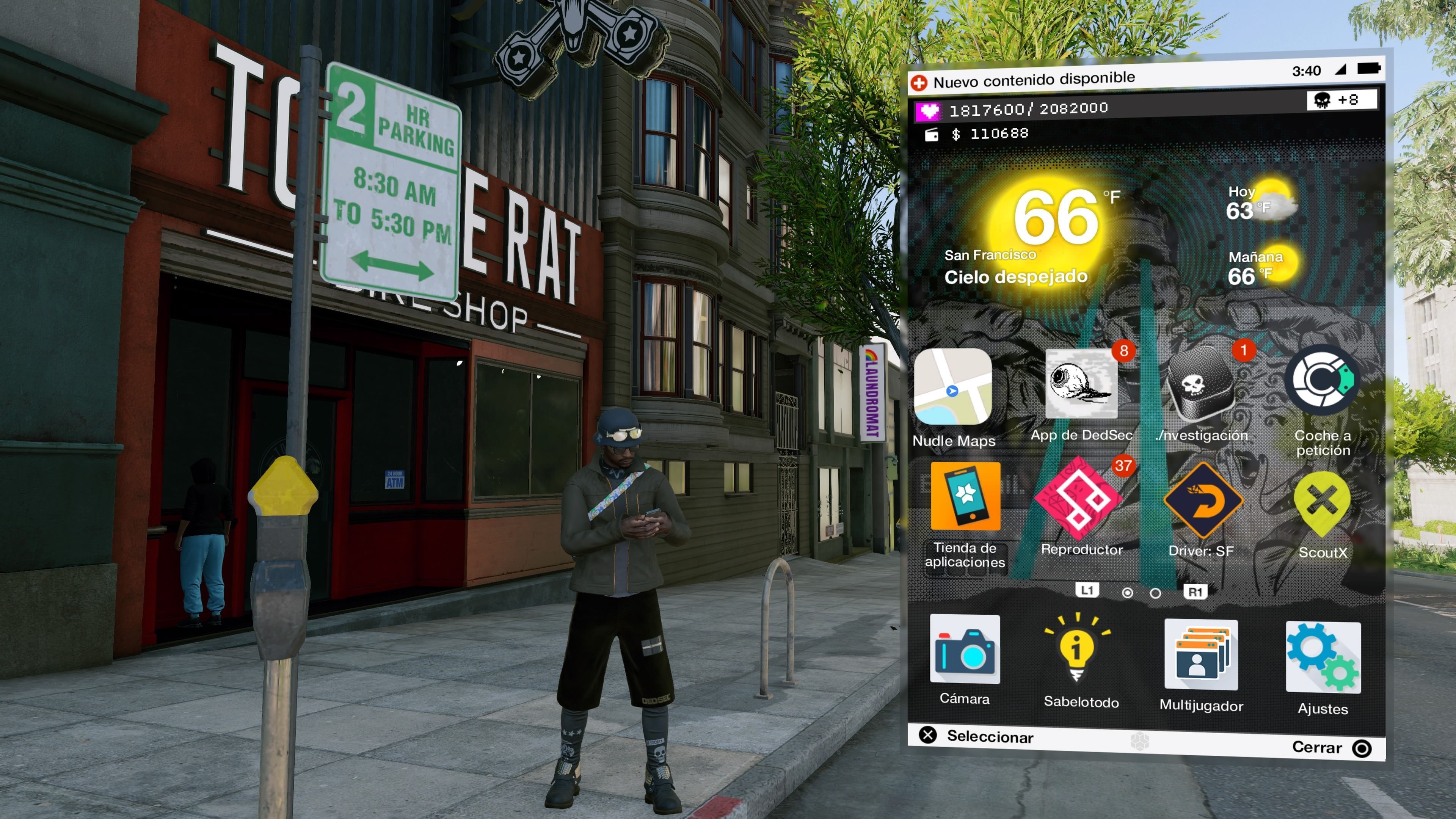 Otro aspecto fundamental en Watch Dogs 2 es el teléfono móvil. Desde nuestro terminal vamos a poder controlar aspectos tan importantes como el GPS, el reproductor de música o la cámara; sin embargo, el elemento más sorprendente es que vamos a contar con una buena cantidad de aplicaciones que ampliarán todavía más las posibilidades jugables en San Francisco. Gracias a ello, podremos pedir un coche, convertirnos en taxistas para conseguir dinero extra o hacernos selfis en puntos emblemáticos de la ciudad para compartirlo en una red social al más puro estilo Instagram. Todos estos añadidos, que no tendrán importancia en la trama principal, son realmente divertidos y podremos acceder a ellos de forma dinámica gracias a los avisos.