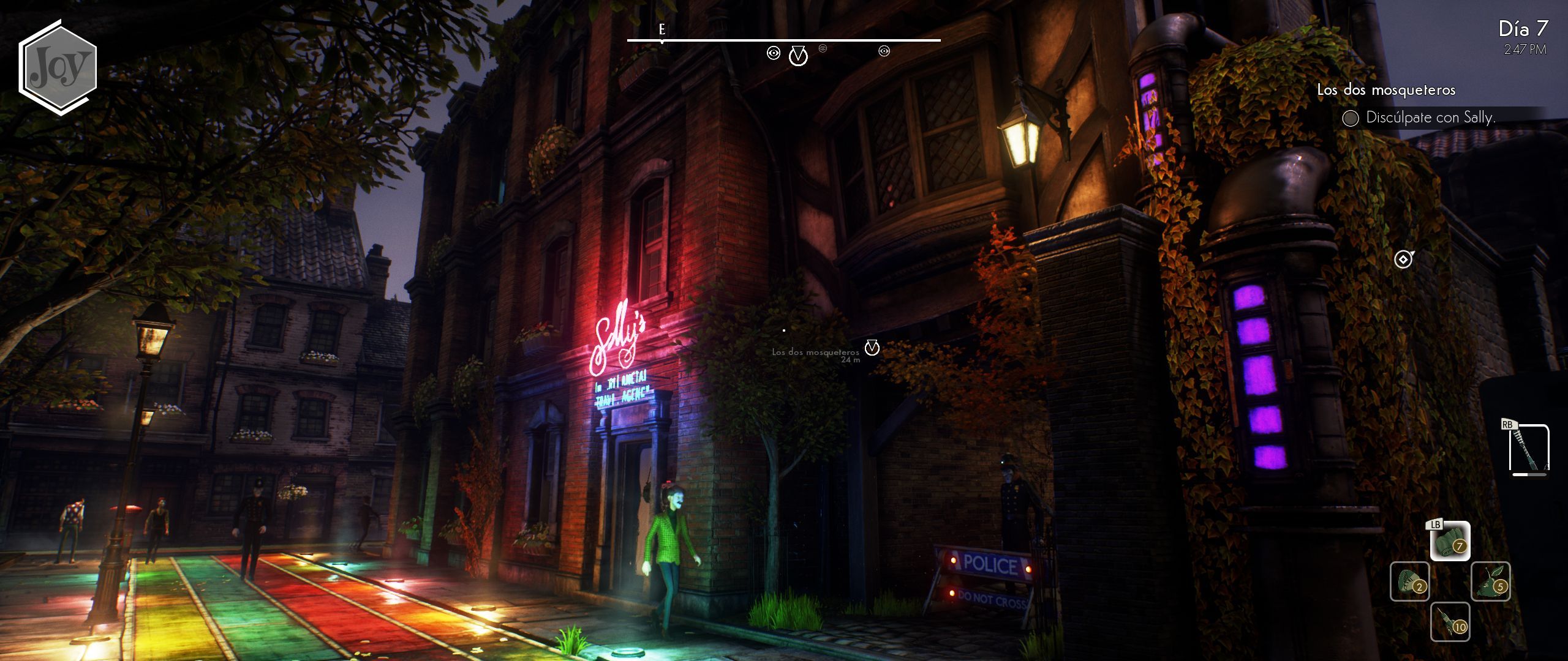 Apuntar también que, en lo sonoro, tenemos un muy buen trabajo. El doblaje nos llega en inglés, un elemento esencial para integrarse con la cultura de los habitantes de Wellington Wells, y que pondrá a prueba vuestro oído con multitud de acentos de la isla. Eso sí, tenemos textos en castellano para seguir la acción, aunque no son pocos los textos que aparecen repentinamente en inglés o que, sencillamente, no aparecen. Por ejemplo, los vídeos finales aparecen sin subtítulos, así que, o hablas inglés, o no te enteras de cómo termina la historia. La música también es genial, aunque más discreta.