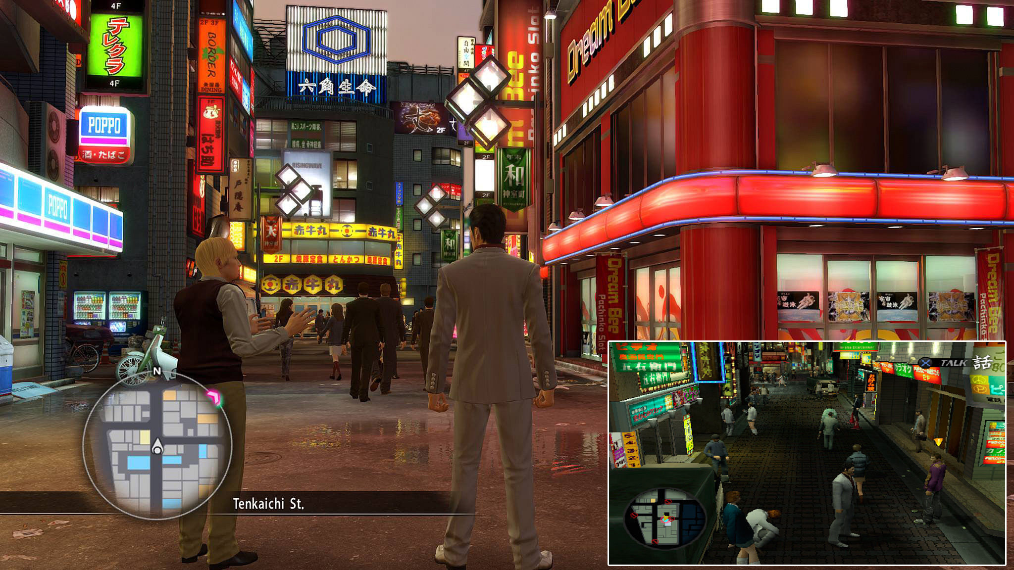 La mejora en inmersión, que en este caso consideramos un elemento importante para la saga, no sólo se consigue por mejores texturas o iluminación, también hay decisiones en diseño que lo hacen más cómodo. Si damos un vistazo a la jugabilidad de los dos primeros Yakuza la cámara fija se situaba en una posición muy alejada a Kiryu –a veces a vista de pájaro-, las interrupciones de luchas entorpecían la coherencia y las calles de Kamurocho estaban más vacías e inanimadas. Es la versión definitiva para disfrutar del clásico, lo comparemos con el original o su remasterización.