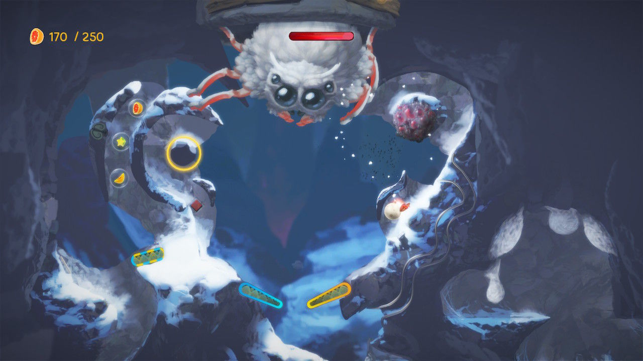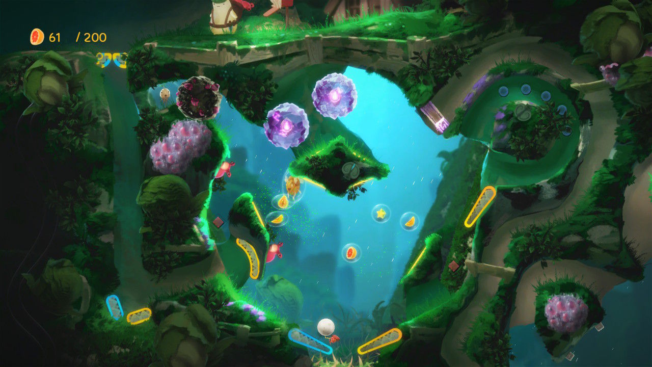 El mundo está dividido en multitud de pequeñas secciones perfectamente conectadas entre sí, y que funcionan a modo de mesas de pinball, con estructuras más o menos complejas o sorprendentes, y los habituales mecanismos de este antiguo y querido entretenimiento. No hacemos puntos, pero sí que vamos recogiendo frutas constantemente, que sirven para abrir caminos o conseguir objetos y mejoras para el personaje, como ampliar la capacidad del inventario.