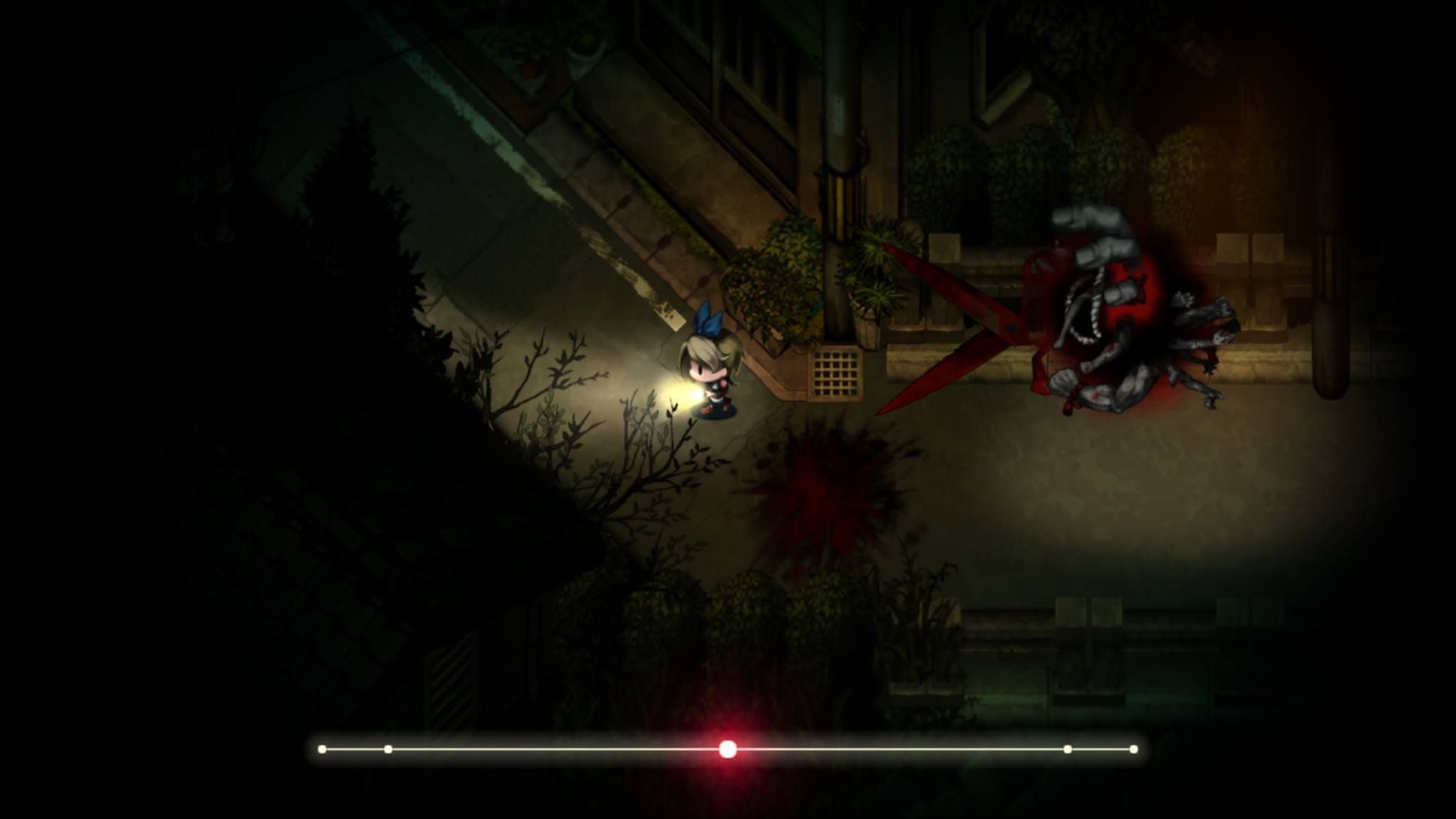 Ciertos espíritus son tan grandes que bloquean los caminos, otros patrullan una calle o se puede pasar cerca de ellos sin armar mucho ruido –de puntillas-. Correr no siempre es una opción, pues existe una barra de cansancio que se agota rápidamente bajo la presión del miedo. Esto es lo que convierte a Yomawari en una saga de terror clásica: poner al jugador en inferioridad de condiciones y con sensación de estar al límite de sus posibilidades. No olvidemos que aquí el guardado también se limita con el uso de monedas y en puntos concretos –unos pequeños templos o teléfonos-.