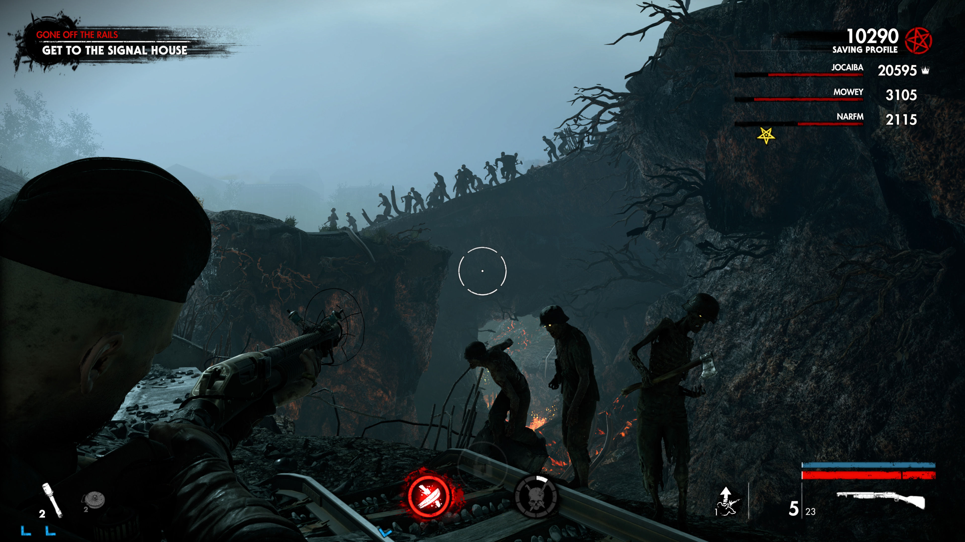 Zombie Army 4: Dead War es un juego de disparos en tercera persona que sigue la estela de otros muchos títulos desarrollados por Rebellion, como Sniper Elite, Strange Brigade, y, por su puesto, las anteriores entregas de la saga que hoy nos ocupa. Su propuesta no es demasiado compleja de entender: preferiblemente con un grupo de amigos, encarnamos a hasta cuatro francotiradores que tienen que acabar con hordas de zombis nazis antes de que ellas acaben con nosotros. Con una historia tan surrealista como podéis imaginar, nos embarcamos en una aventura a lo largo de ocho extensas misiones en las que no podemos dejar a un no-muerto vivo. Ya nos entendéis.