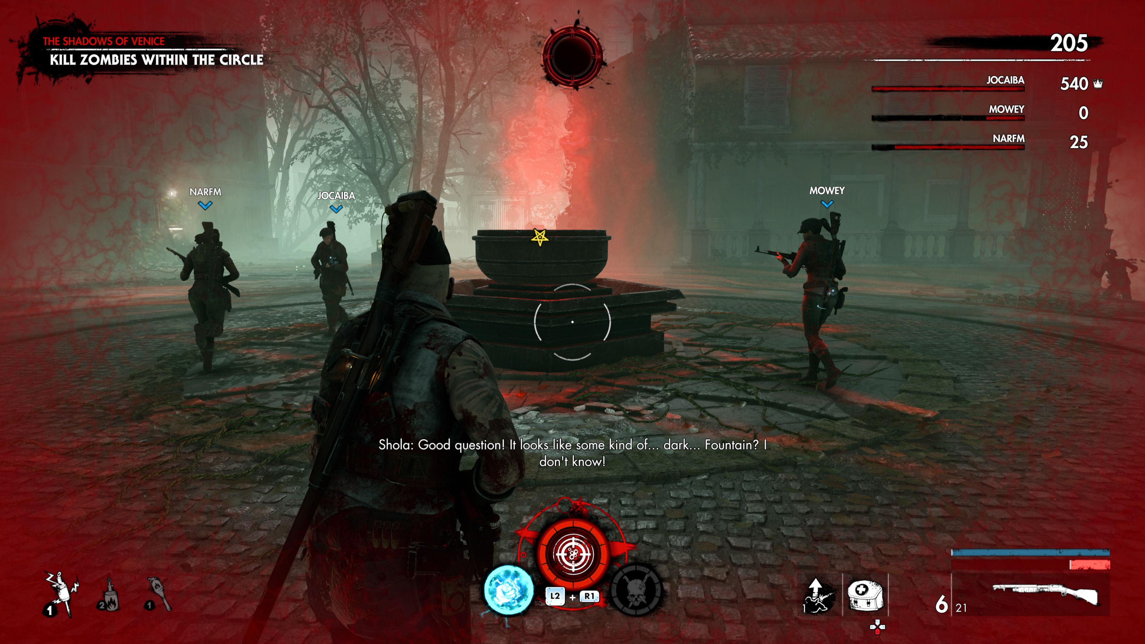Algunos ejemplos, para ilustrar lo que mencionamos: en una misión tendremos que llevar un objeto pesado a través de zonas inundadas. Los objetos pesados sólo nos dejan una mano libre, obligándonos a usar únicamente la pistola para defendernos, y esto hace que seamos particularmente vulnerables. En zonas inundadas, además, no podemos correr, por lo que es prácticamente imprescindible que nuestro equipo nos acompañe para defendernos mientras llevamos el objeto al objetivo. Otro momento nos atrapa en un puente con enemigos viniendo desde ambas partes. La única solución es poner trampas y colocarnos espalda contra espalda para repeler el ataque. Estos detalles son importantísimos ya que, teniendo en cuenta que sus mecánicas no son particularmente variadas, son las situaciones las que tienen que ofrecer esa variedad.