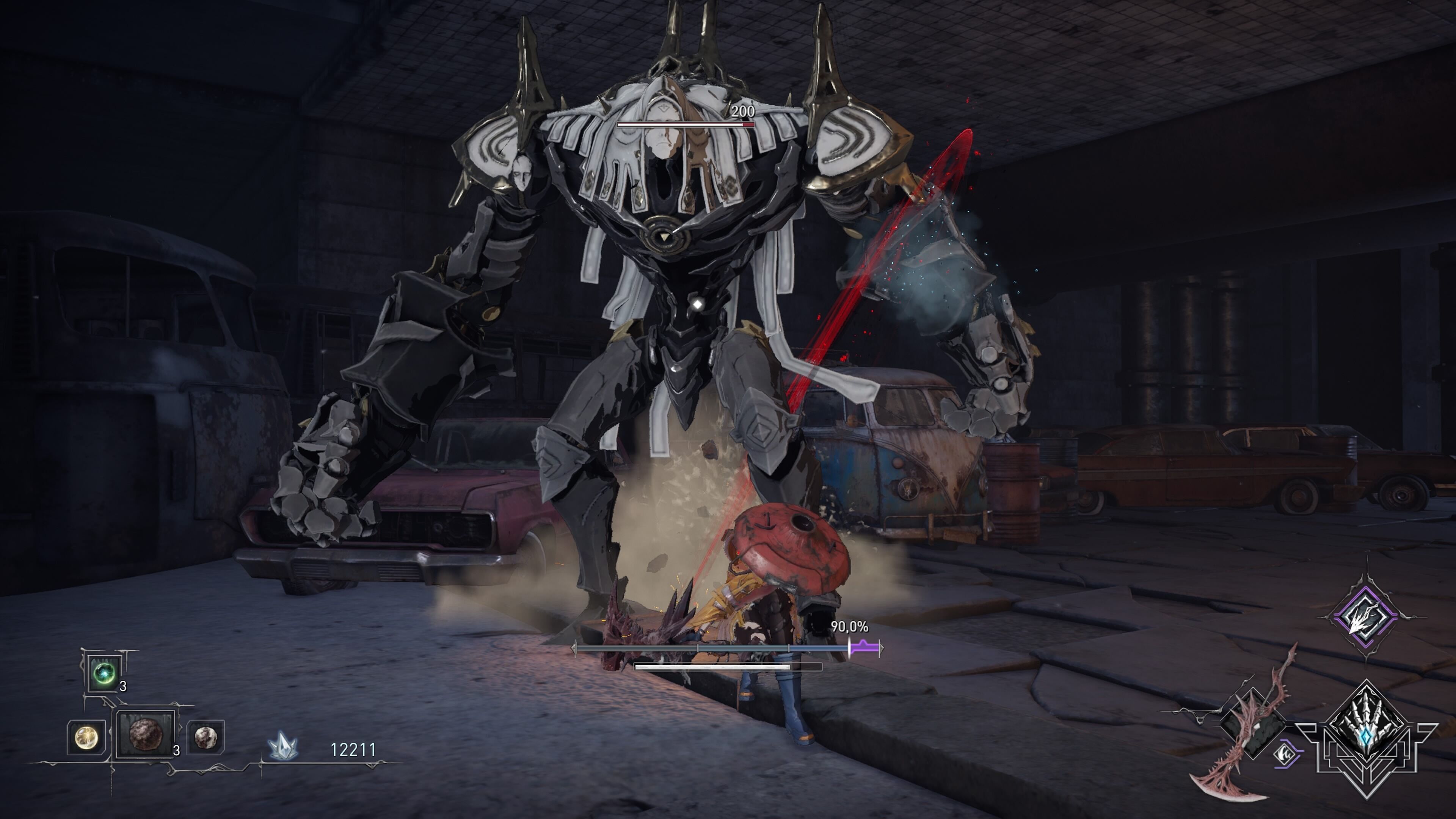 Hablando de batallas y de dificultad, cabe destacar que AI Limit es uno de los juegos tipo Souls más fáciles con los que nos hemos topado. Si bien sube un poco el nivel de reto en la recta final, se trata de una aventura sorprendentemente sencilla y accesible que no debería suponeros casi ningún desafío si estáis habituados a lo que el género suele proponer. Con esto no queremos decir que sea un paseo, ya que muertes vais a tener y hay alguna que otra situación exigente, pero tampoco es una producción en la que os vayáis a quedar atascados o que os vaya a requerir más de unos pocos intentos tumbar a su inmensa mayoría de jefes (en nuestro caso, un gran porcentaje de ellos mordieron la lona a la primera).