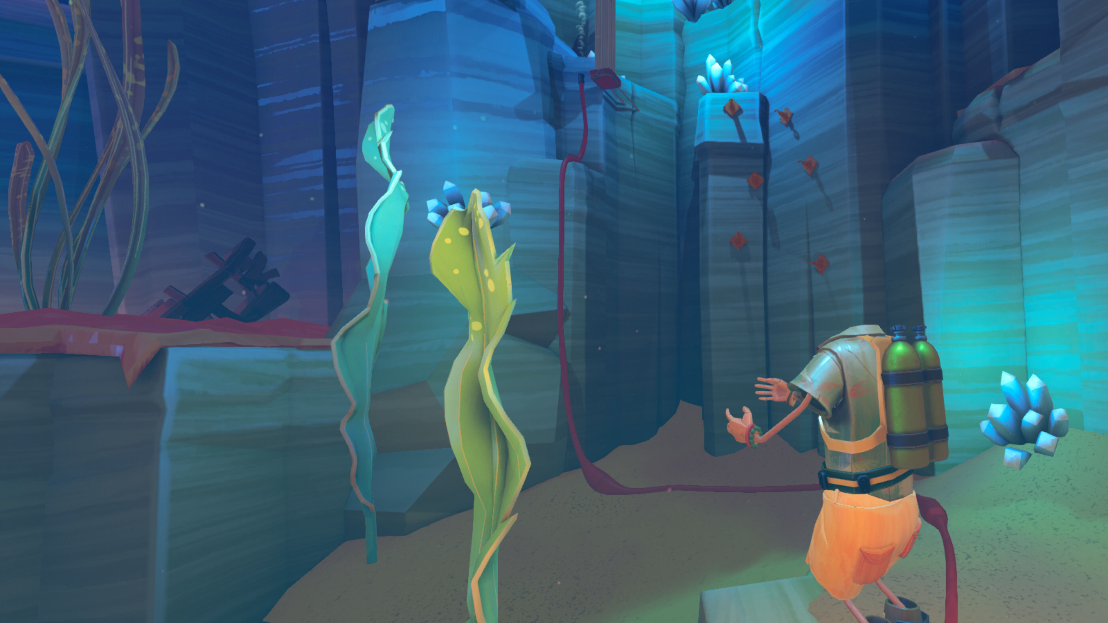 Siempre que analizamos juegos de realidad virtual nos gusta destacar que se aproveche el formato y Another Fisherman’s Tale es un fantástico ejemplo. Por ejemplo, podemos lanzar nuestras manos «humanas» por el escenario y movernos con ellas emulando al personaje de La familia Addams. En lugar de usar los sticks, tenemos que orientarla girando nuestras manos. Hay muchos pequeños detalles que ayudan con la interacción, con la inmersión y, en definitiva, a darnos la sensación de que no es un juego que podría funcionar en un formato bidimensional.