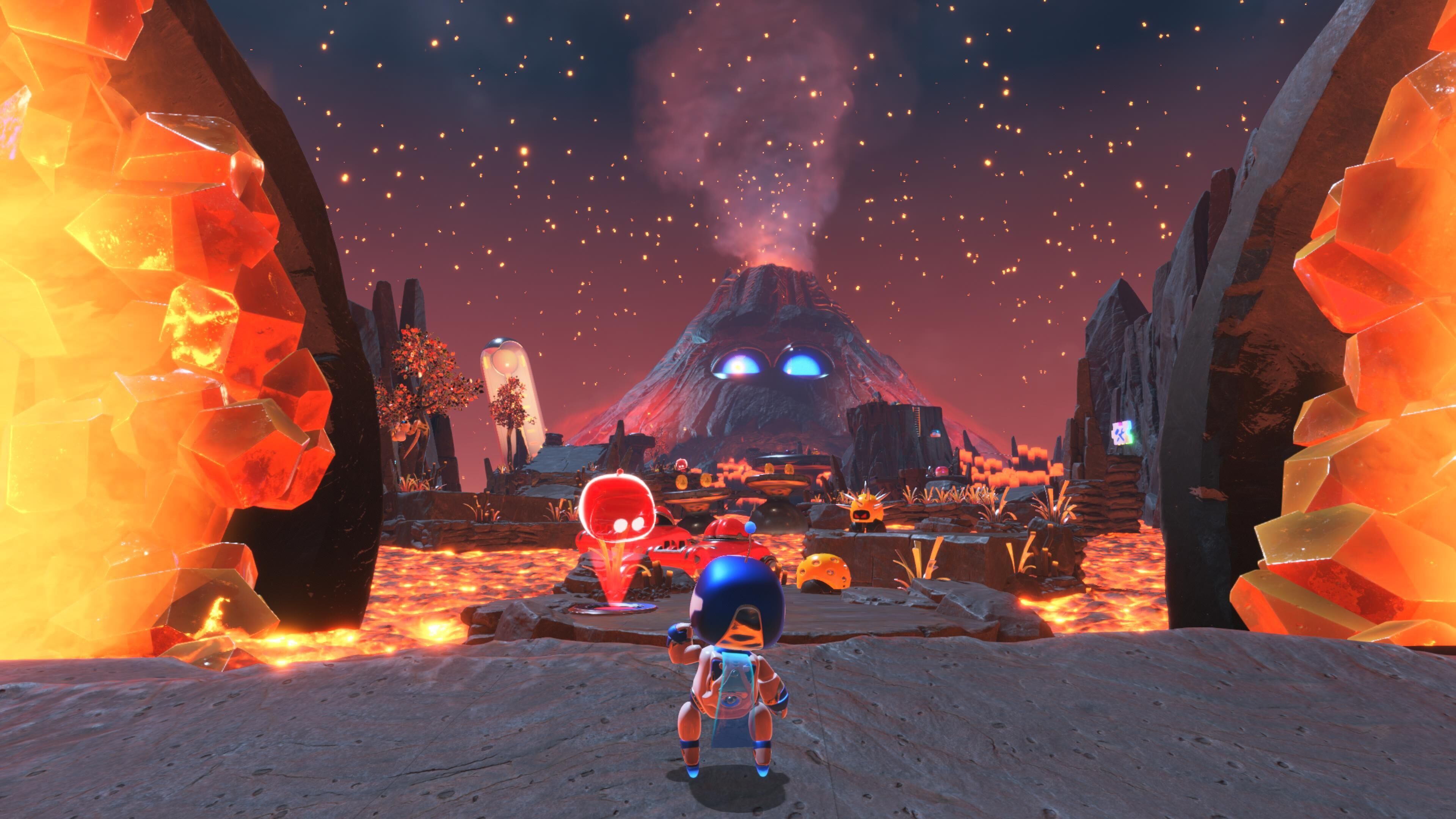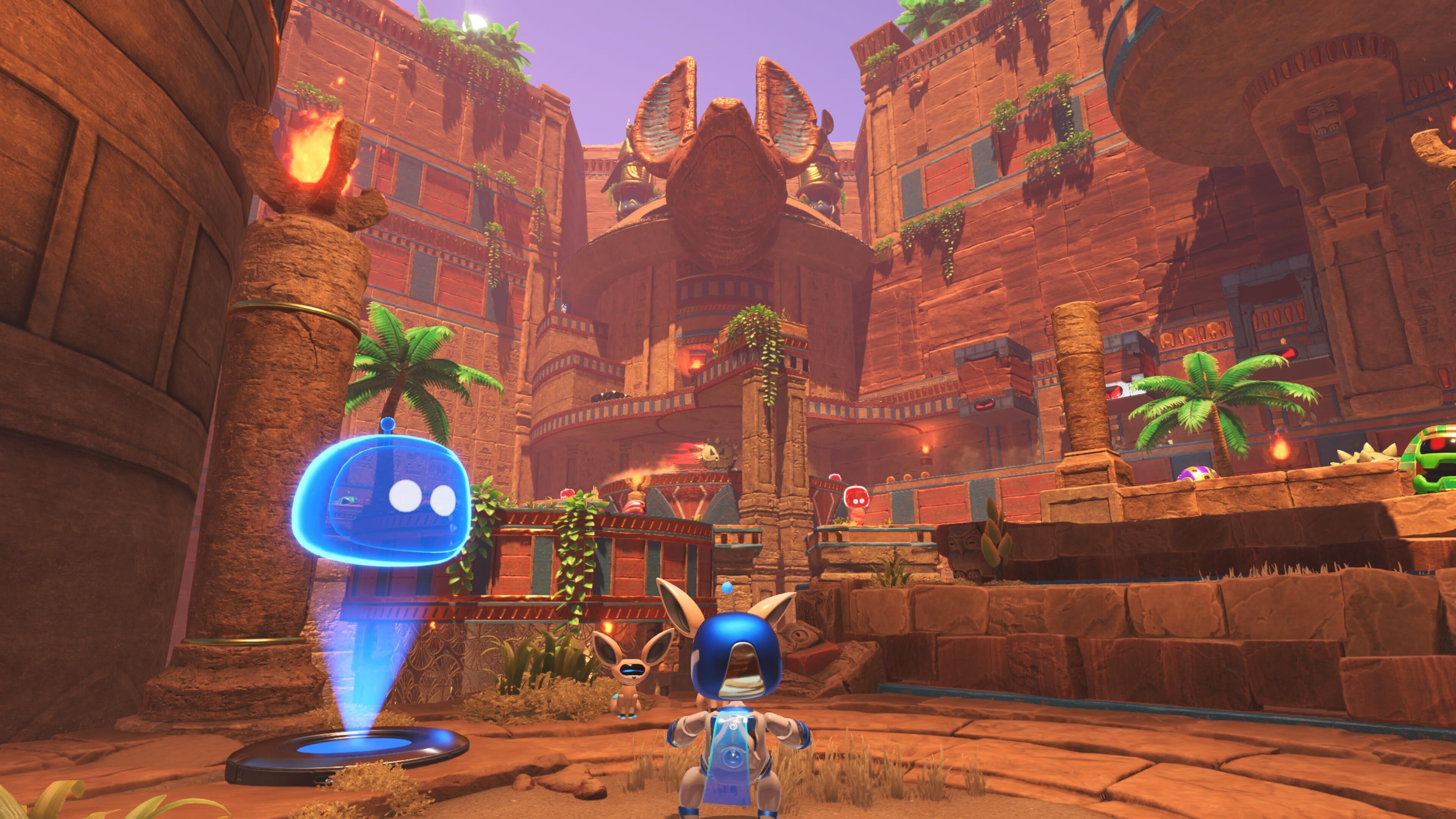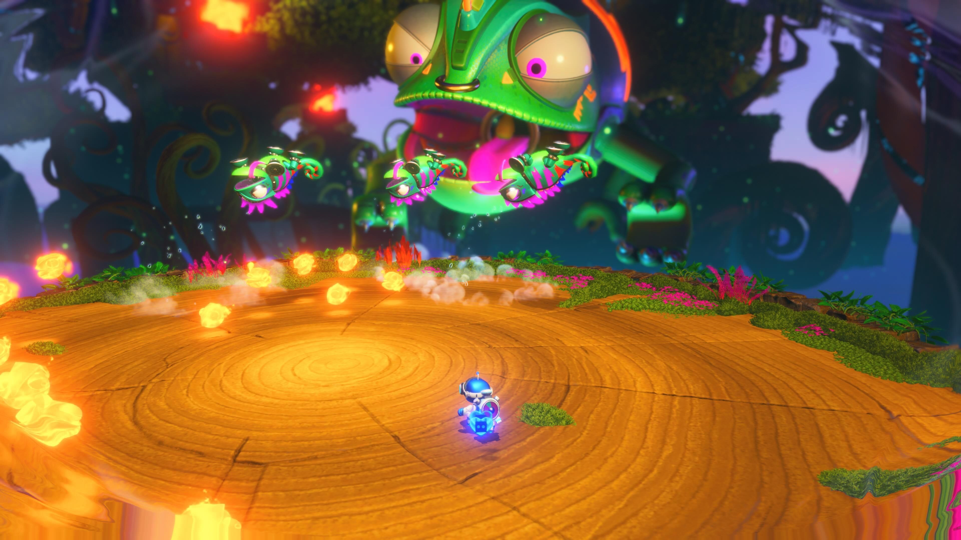 De hecho, querríamos detenernos un segundo a hablar de sus animaciones, ya que hay montones de ellas y le dan una personalidad a todos los personajes que no podemos pasar por alto, incluyendo enemigos normales y jefes. El mismo Astro Bot es carisma puro y basta verlo moverse un rato en pantalla para que nos enamore con sus múltiples reacciones a todo lo que ocurre durante la partida, con multitud de pequeñas animaciones que reflejan su estado de ánimo. Y sí, contamos con un botón para ponernos a bailar y la lista de posibles danzas que podemos hacer es bastante alta.