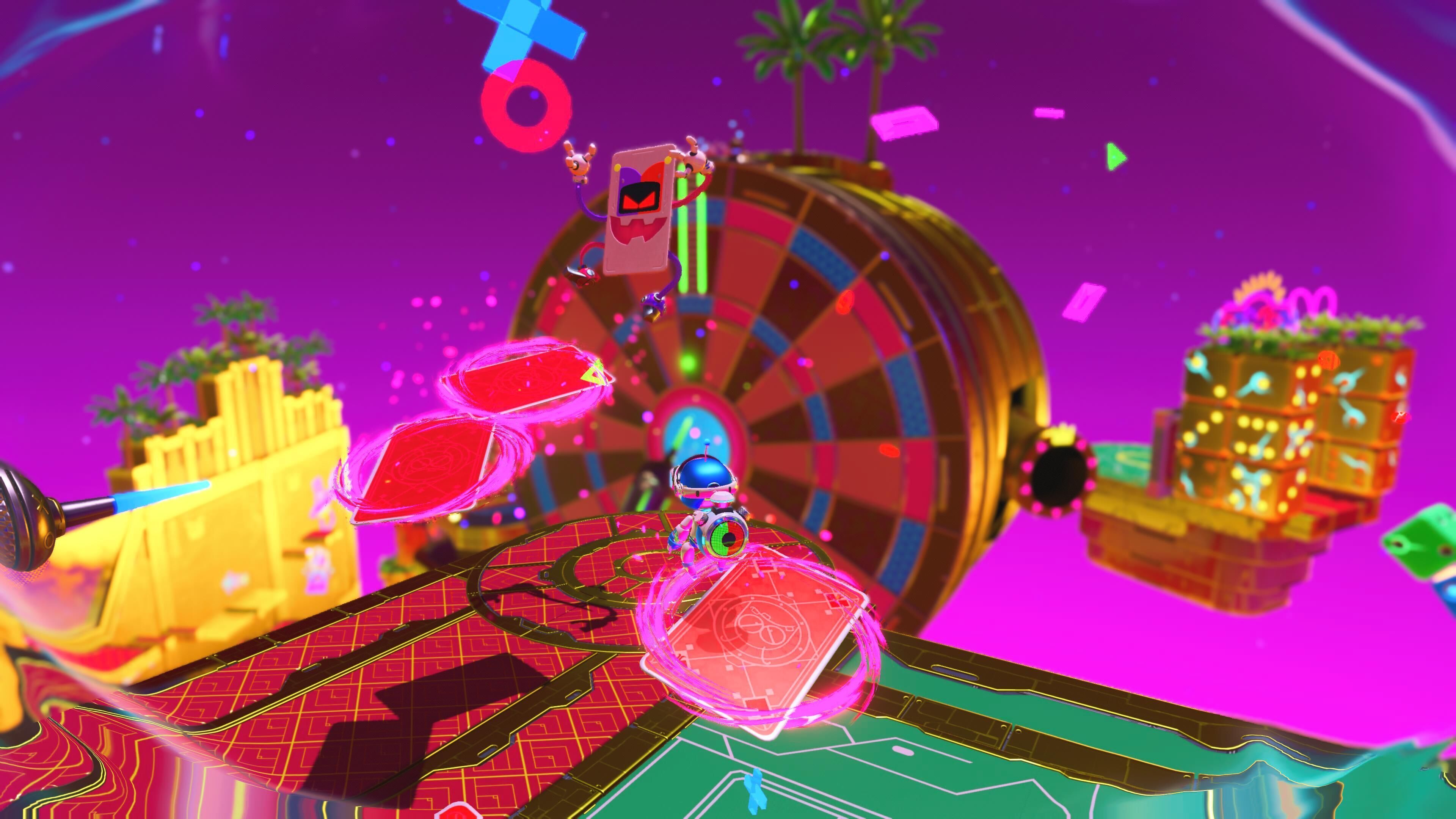 Por supuesto, todo esto caería en saco roto sin un buen diseño de niveles capaz de construir una aventura variada y repleta de situaciones estimulantes con las que poner en práctica nuestro dominio de los saltos, un apartado en el que, afortunadamente, Astro Bot vuelve a sobresalir. Como hemos dicho anteriormente, las fases tienen un desarrollo muy lineal y para completarlas nos basta con seguir el camino principal hasta alcanzar la meta, pero todas y cada una de ellas nos bombardea con un constante torrente de ideas y mecánicas con el que no dejan de sorprendernos.