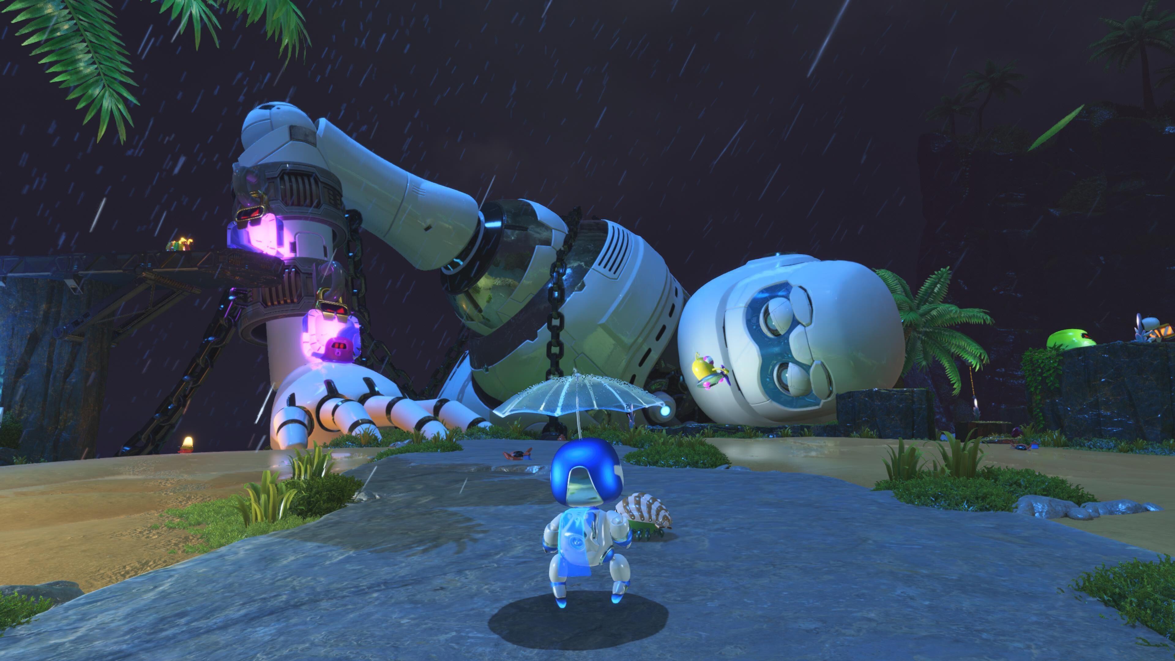 La gran mayoría suelen estar más o menos a la vista y los que no basta con que nos fijemos un poco para dar con ellos. En nuestro caso, hemos terminado todos los niveles rescatando a todos los bots a la primera y aunque hay algunos escondidos de formas relativamente imaginativas, no nos han dado ningún problema. Por otra parte tenemos una serie de piezas de puzles que sí que están algo más ocultas o situadas en lugares que requieren que nos arriesguemos con saltos más complicados de lo normal y cuyo uso vamos a dejar que lo descubráis por vosotros mismos.