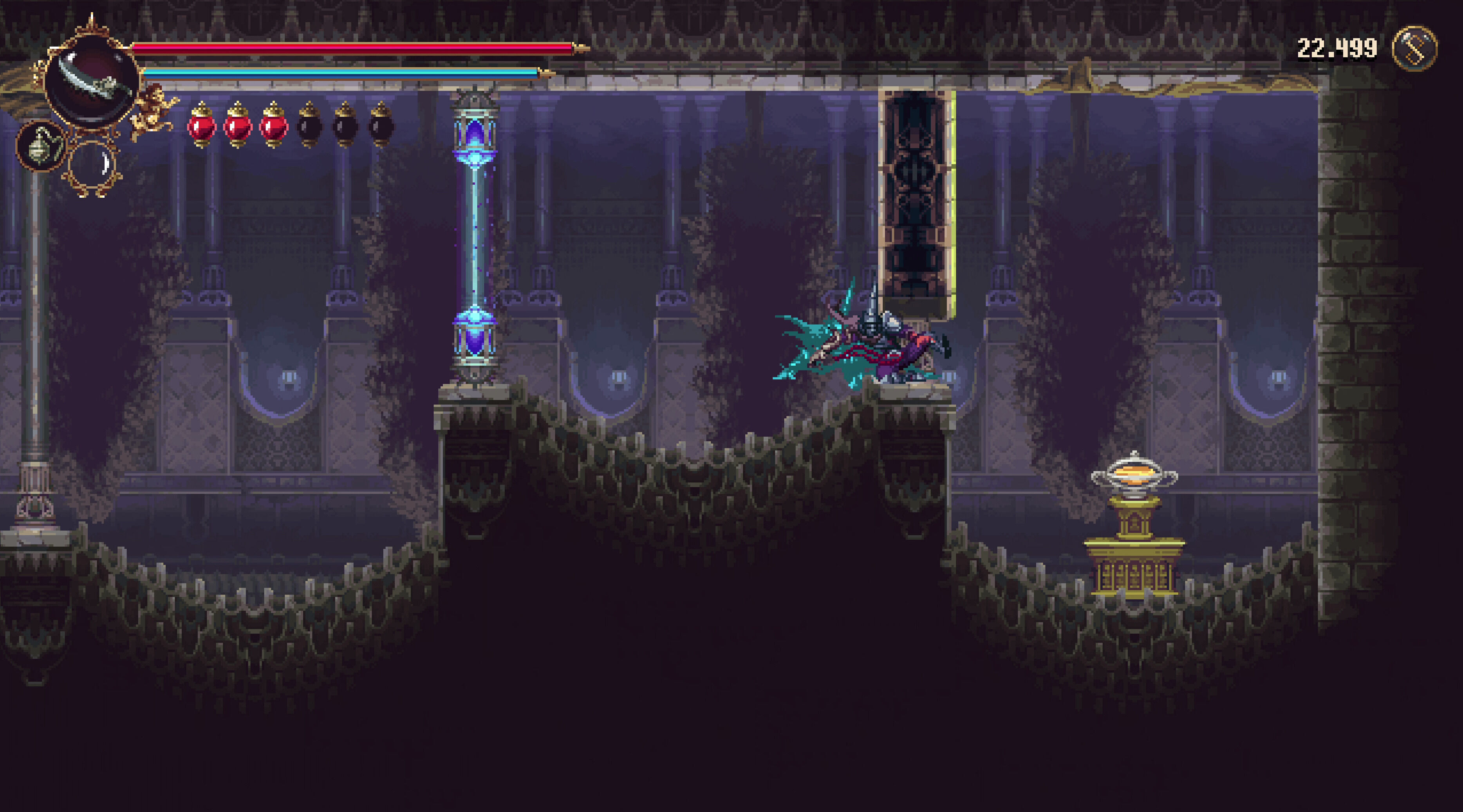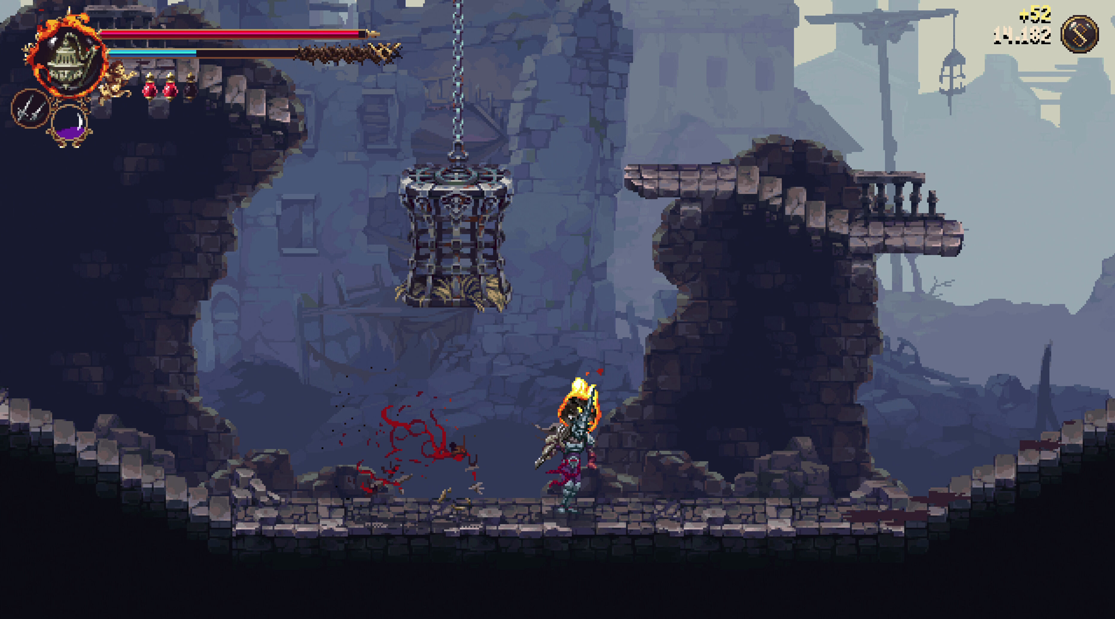 En términos generales, es un juego desafiante y bien equilibrado que nos obliga a estar atentos y jugar bien, aunque es más asequible que su predecesor y hemos muerto muchísimo menos, probablemente otra consecuencia de que ahora se haya sacudido las influencias de los soulslike. Un buen ejemplo de esto lo tenemos en que ahora caer en unos pinchos o a un abismo solo nos restará una ligera porción de salud y nos teletransportará al sitio desde el que intentamos el salto en vez de morir, y el jefe que más nos ha costado nos ha llevado un máximo de 3 intentos. Quizá esto os pueda sonar decepcionante si venís buscando un reto que os haga sudar sangre, pero creemos que The Game Kitchen ha encontrado con estos ajustes un punto muy dulce que hace que la partida fluya mucho mejor que antes sin caer en trampas baratas o muertes frustrantes que nos hagan repetir largos tramos por un salto mal dado. De hecho, gracias a esto han podido experimentar más con el diseño de niveles y las secciones de plataformas, algo que se nota, sobre todo, en la recta final.