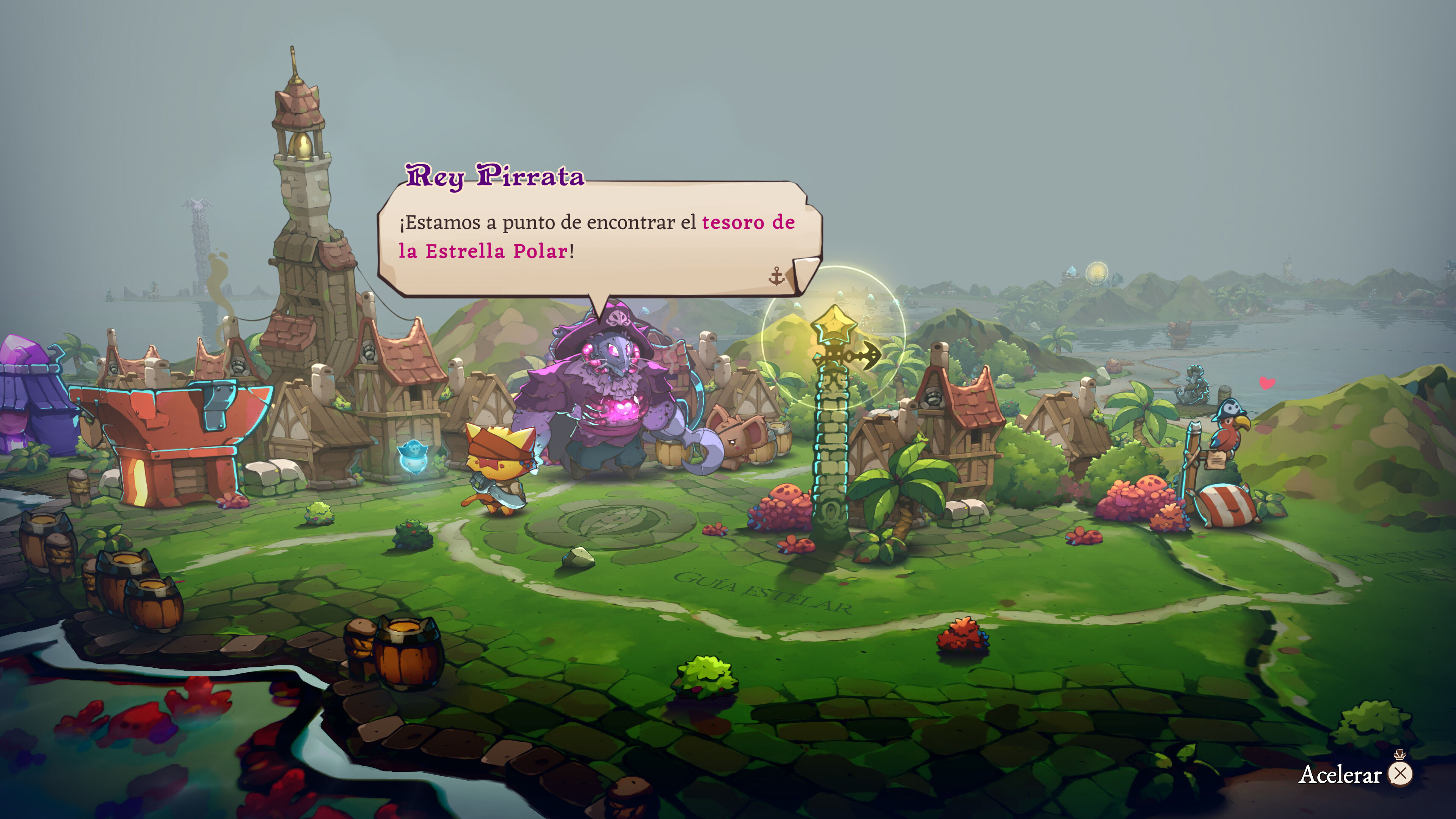 Como os contamos en nuestras impresiones, Cat Quest 3 es un juego que se puede jugar perfectamente sin conocer los anteriores juegos. Su breve introducción nos da toda la información que se necesita para embarcarnos en esta búsqueda de un tesoro mítico al estilo One Piece, lo que trae una de las principales novedades de la entrega: una temática de piratas que nos hace surcar los mares y visitar islas más las mecánicas que ya conocíamos de exploración en tierra y la inspección de pequeñas mazmorras.