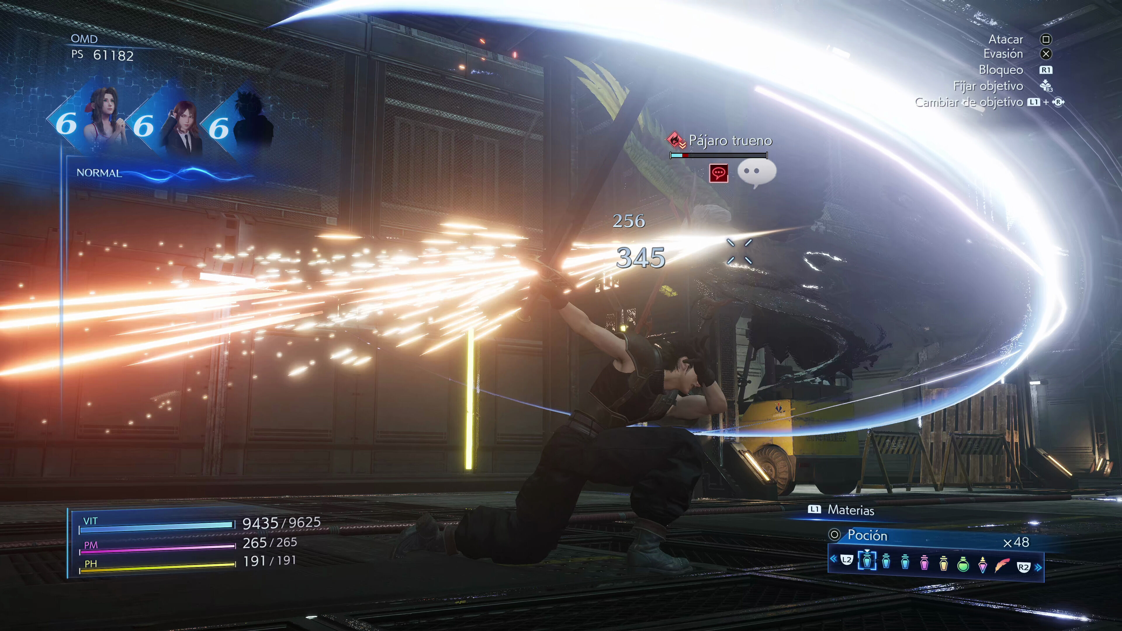 Se trata de un sistema donde la suerte juega un papel fundamental, por lo que sigue sin convencernos demasiado, aunque ahora es muchísimo menos intrusivo que antes y resulta bastante menos molesto. Cuando en la versión original conseguíamos un buen resultado, los rodillos del OMD pausaban la acción para ocupar toda la pantalla y mostrarnos qué íbamos a conseguir, algo que sucedía con muchísima frecuencia y llegaba a resultar extremadamente frustrante y tedioso. En cambio, en Reunion esto ya no ocurre, por lo que la acción nunca se interrumpe salvo cuando desbloqueamos alguna de las escenas en la que Zack recuerda haber pasado tiempo con sus compañeros, las cuales pueden omitirse. Si conseguimos un potenciador, un Límite o una Invocación, recibiremos un aviso de ello mientras la pelea se sigue desarrollando con normalidad, lo que mejora la experiencia hasta niveles que no nos podíamos ni imaginar.
