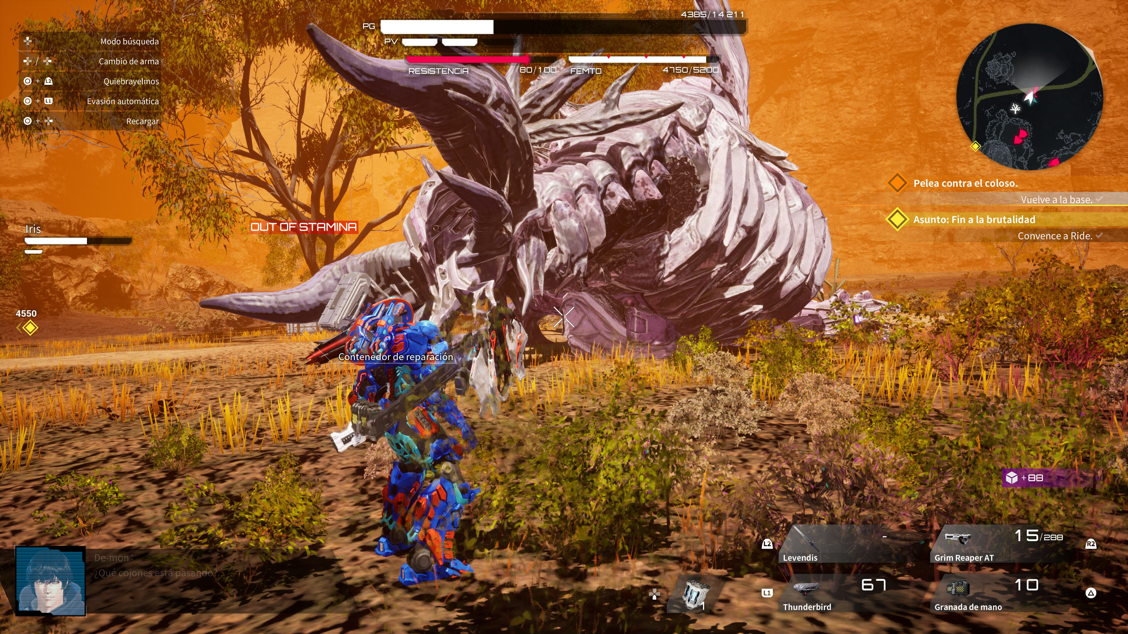 No obstante, el combate tiene momentos divertidos, sobre todo cuando nos enfrentamos a enemigos de gran tamaño, atacamos a diferentes partes del cuerpo, esquivamos golpes demoledores y damos uso a ese bonito arsenal que hemos estado recolectando. Contra los enemigos más genéricos, esos que puedes encontrar en el mapa (sean robots o monstruos) las batallas son más simples y monótonas, pero con los jefes y enemigos gigantescos es otra cosa, especialmente en compañía (y hay juego cruzado entre plataformas). La sensación de tener ahora una especie de MMO o Monster Hunter con mechas está ahí y quizás sea lo más meritorio de Titanic Scion.