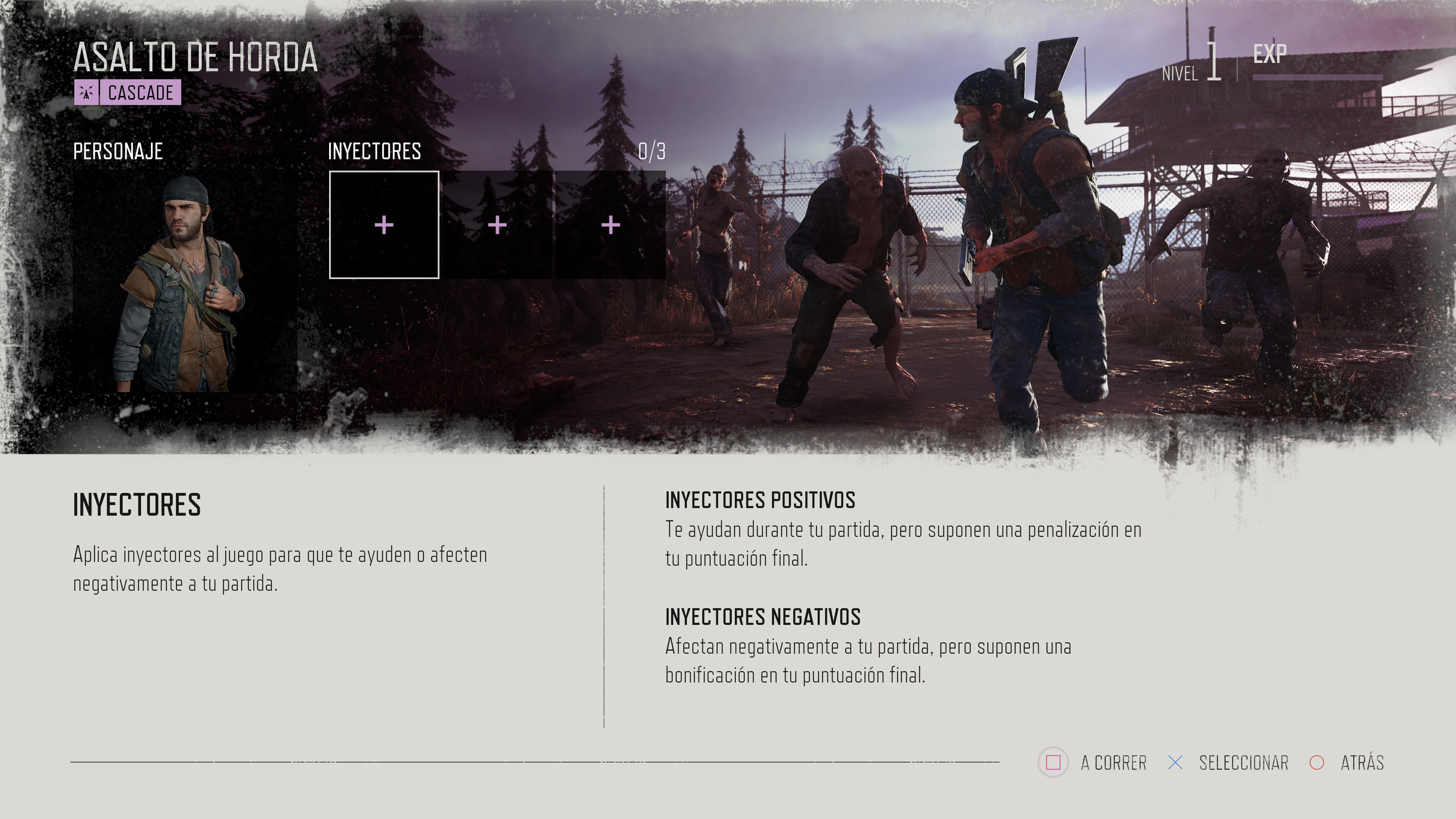 La idea es escoger un personaje, mapa y lanzarse a por las mejores puntuaciones sobreviviendo a oleadas crecientes de enemigos mientras obtenemos cajas de suministros o cumplimos objetivos secundarios que proporcionan más experiencia. Hay desbloqueables que dan rejugabilidad y una serie de inyectores o modificadores de personalización: los negativos (por ejemplo reducir la eficacia de los objetos de curación) a cambio recompensan con más puntuación, y los que mejoran al personaje nos la restan. De esta manera, puedes bajar un poco la dificultad pero necesitarás mejores récords o más partidas para conseguir la experiencia que se recibe con un Asalto de Horda más complicado.