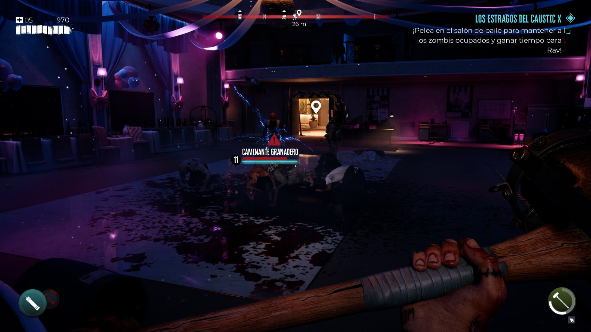 Dead Island 2 brilla, sobre todo al principio, por lo divertido que es masacrar zombis. Es un sistema de combate centrado en las armas cuerpo a cuerpo, aunque también hay armas a distancia, y en el que es muy importante dominar la esquiva o el bloqueo en el momento justo, dependiendo de cómo personalicemos nuestro personaje, pues es un juego donde hay que gastar cuidado: vernos rodeados de dos o tres muertos vivientes normales o de alguna de las especies más poderosas puede acabar en la pantalla de game over. O al menos, como decíamos, al principio.