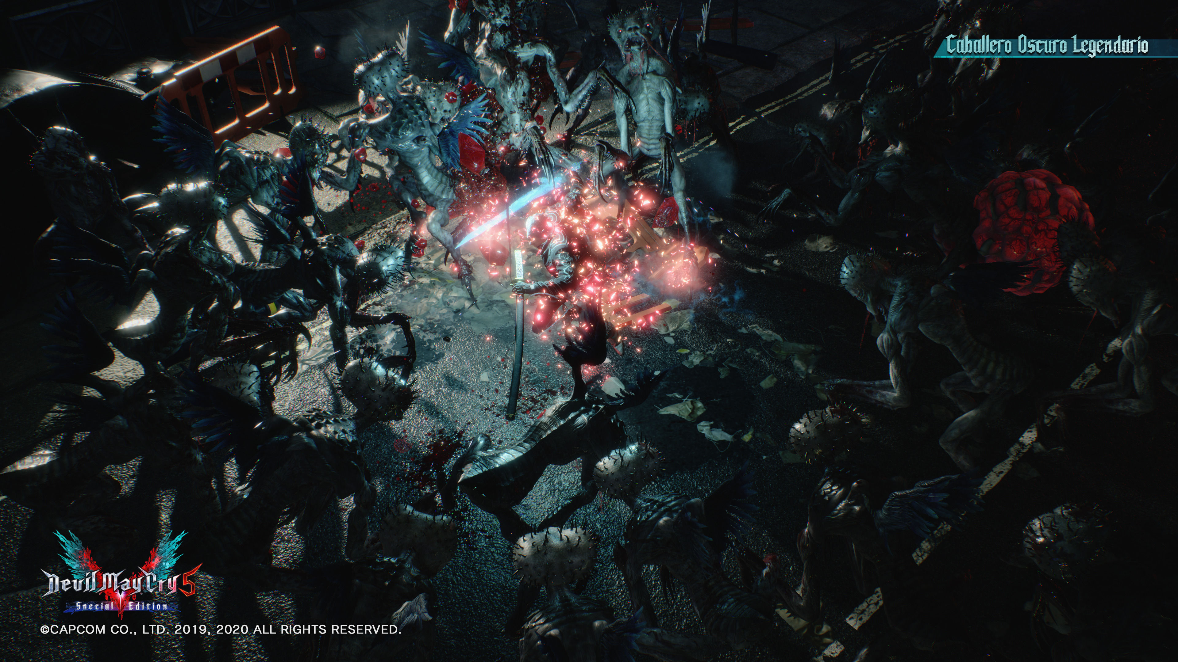 Otras novedad destacable en el apartado jugable es un nuevo modo de dificultad, llamado Caballero Oscuro Legendario, que convierte a DMC5 en un musou, literalmente. En este modo aparecen decenas de enemigos a la vez, además de rivales más duros desde las primeras fases, y es bastante curioso porque han aprovechado la mayor potencia de las nuevas consolas para poner un montón de elementos en pantalla y que los 60fps no se resientan. Con tanto bicho al que golpear os podéis imaginar los interminables combos que se pueden realizar, pero tardas tanto en limpiar las arenas que te llegan a doler los dedos de aporrear el mando, y no exageramos. Si ya os conocéis el original de pé a pá es una manera muy curiosa y desafiante de darle una segunda vuelta.