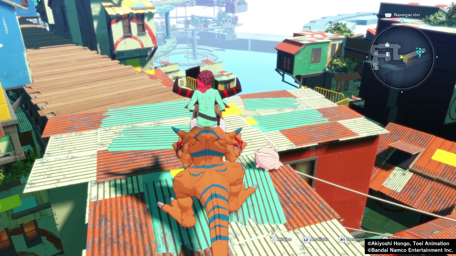 Aun así, a pesar de sus estrecheces, sus muros invisibles y sus caminos encorsetados, funciona y por momentos se siente más que un decorado. Al principio se abusa de túneles y lugares lúgubres sin personalidad, pero después pasamos por distintas zonas de ambientación colorida y variada. Además, es un universo de contrastes. Si bien hay espacios un tanto sosos, la Torre Central, la gran ciudad Digimon, es una urbe vertical en la que apetece explorar cada recoveco y que rezuma vida con todas las criaturas que charlan y pululan por sus favelas.
