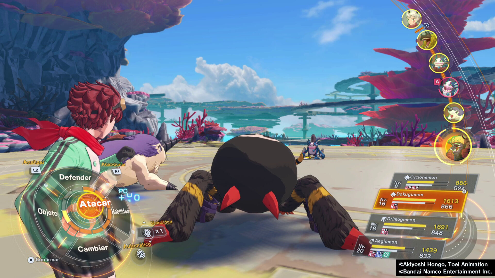 Pero, a la vez, el mundo se percibe rígido y anticuado, como le pasa también a las animaciones de algunas escenas, los efectos visuales (como el humo y las explosiones) y muchas texturas. Como decíamos al principio, es más ambicioso que los Cyber Sleuth, pero tiene ciertas limitaciones que, en lo artístico y lo técnico, lo colocan por debajo de JRPG contemporáneos: en la versión para PlayStation 5 (ejecutada en PS5 Pro) hemos visto ralentizaciones inexplicables y trucos para mejorar el rendimiento (como que personajes y enemigos lejanos se mueven a menos FPS) en un título que, en las máquinas actuales, debería correr con soltura.