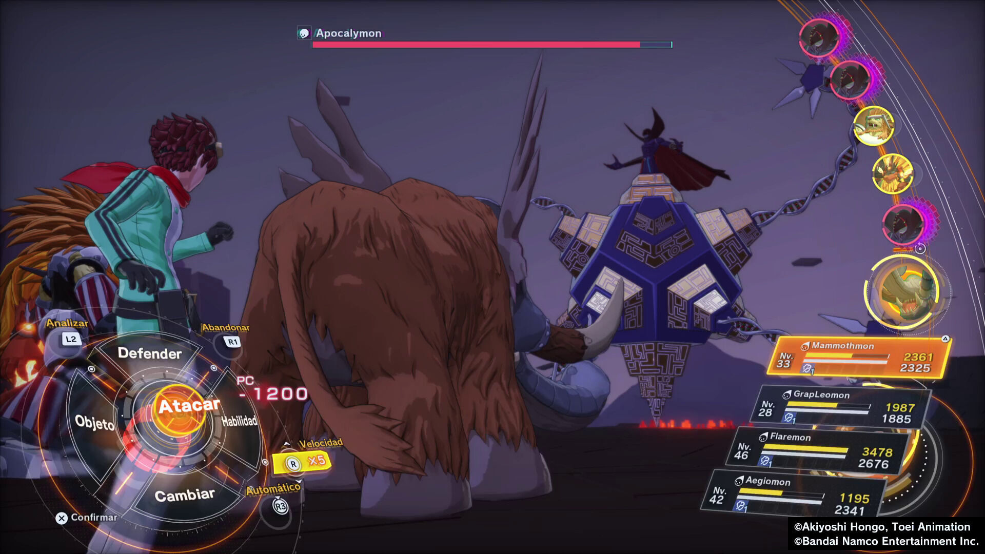 Donde los combates sacan a relucir toda su complejidad es en los enfrentamientos contra jefes, que son muy numerosos. Sobre todo en la segunda mitad del juego son batallas que nos han hecho recomponer nuestro equipo tras varios intentos, que nos han obligado a estar concentrados en cada turno y que nos han hecho medir cada yen gastado en objetos curativos. Son batallas épicas y enrevesadas que a veces funcionan como un puzle que resolver, donde nos hacen ataques que aniquilan a nuestro equipo hasta que damos con la clave, en las que tenemos que poner toda la carne en el asador cuando estos Digimon preparan sus grandes habilidades, y que en ciertos casos suponen intensos combates de más de una hora de duración.