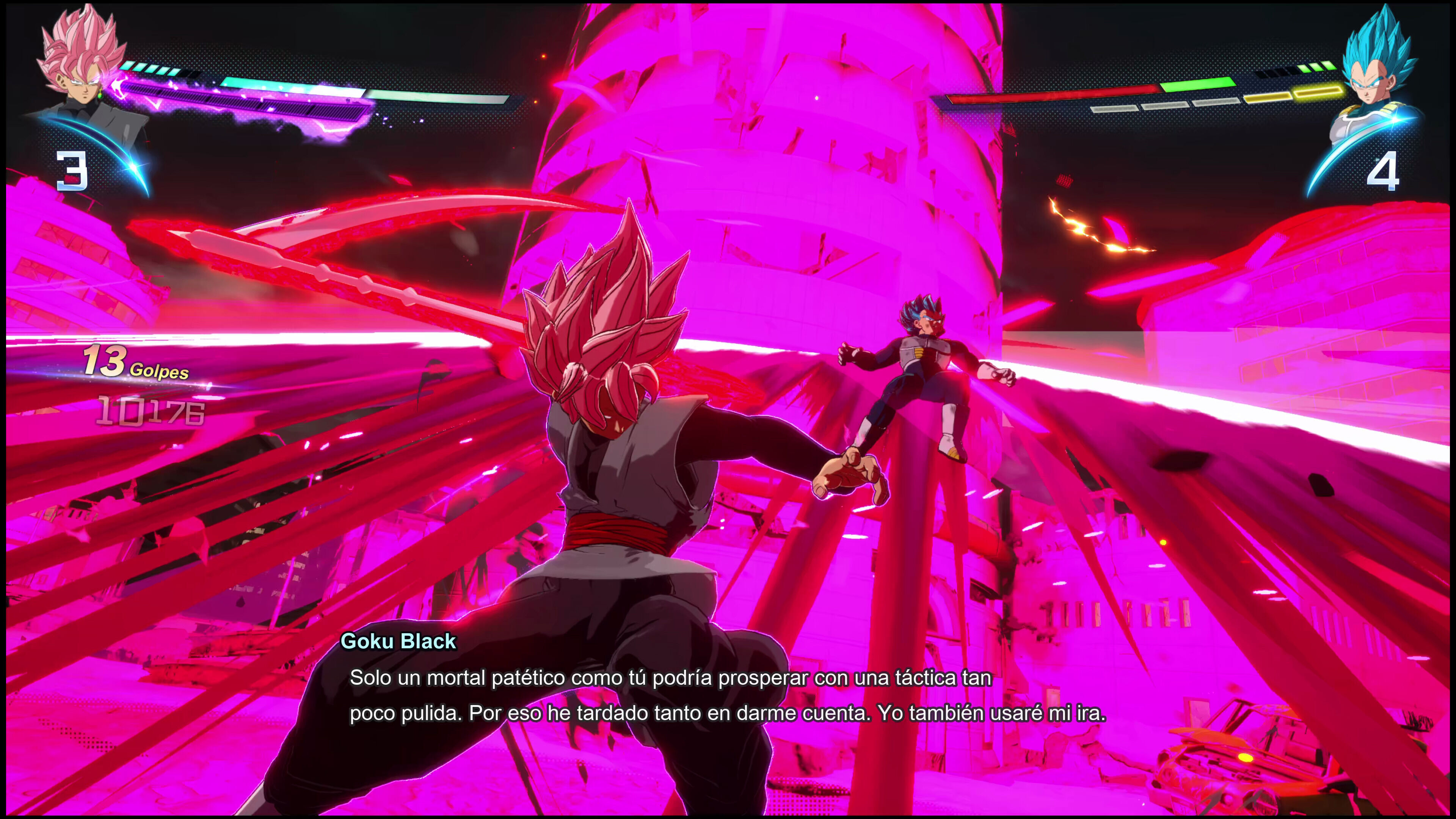 En lo que respecta a los modos de juego, no es que haya muchos, pero sí que ofrecen diversión para un buen número de horas. Para jugar en solitario tenemos Combate de episodio, Combates personalizados, Combates y Torneos. En el primero de ellos, Combate de episodio, podemos seguir la historia de la serie a través de ocho campañas distintas, cada una de ellas protagonizada por un personaje concreto: Goku, Vegeta, Trunks, Piccolo, Gohan, Black, Freezer y Jiren.