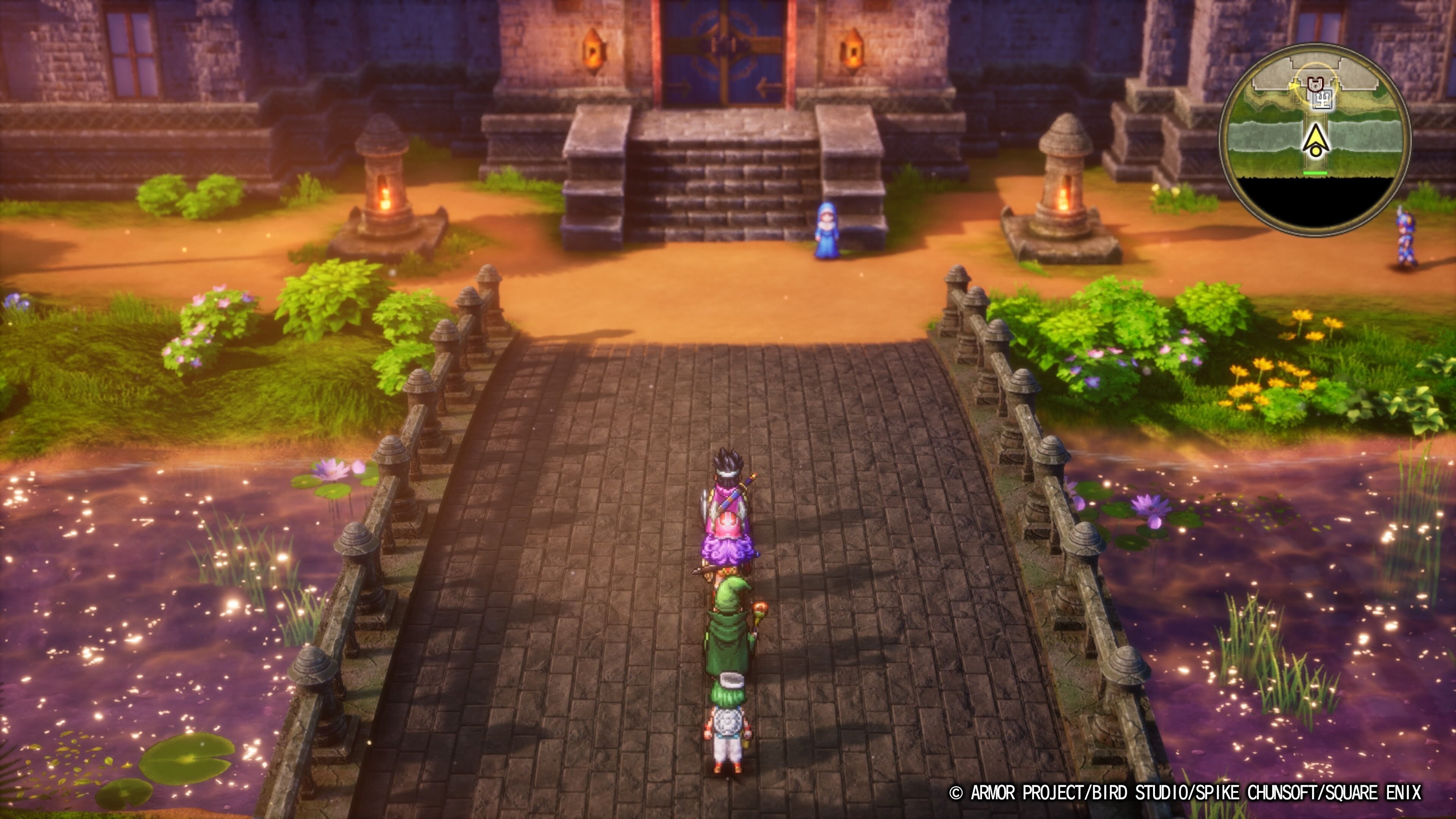 Es inevitable hablar de la estética HD-2D que se ha aplicado a Dragon Quest III. Los fans lo pedían a gritos, y esta es una entrega que brilla mucho más gracias a los cambios aplicados. El carácter épico de los castillos, torres, ciudadelas y mazmorras que ya podías intuir cuando el juego se estrenó en las máquinas de 8 y 16 bits aquí queda representado con la visión que realmente tenían los creadores. Eso nos lleva a visitar paisajes bellos, con la vegetación moviéndose por el viento y repletos de luz, pero también pasillos en penumbra, iluminados tenuemente por antorchas o el brillo fugaz de un rayo que se cuela entre las ventanas.