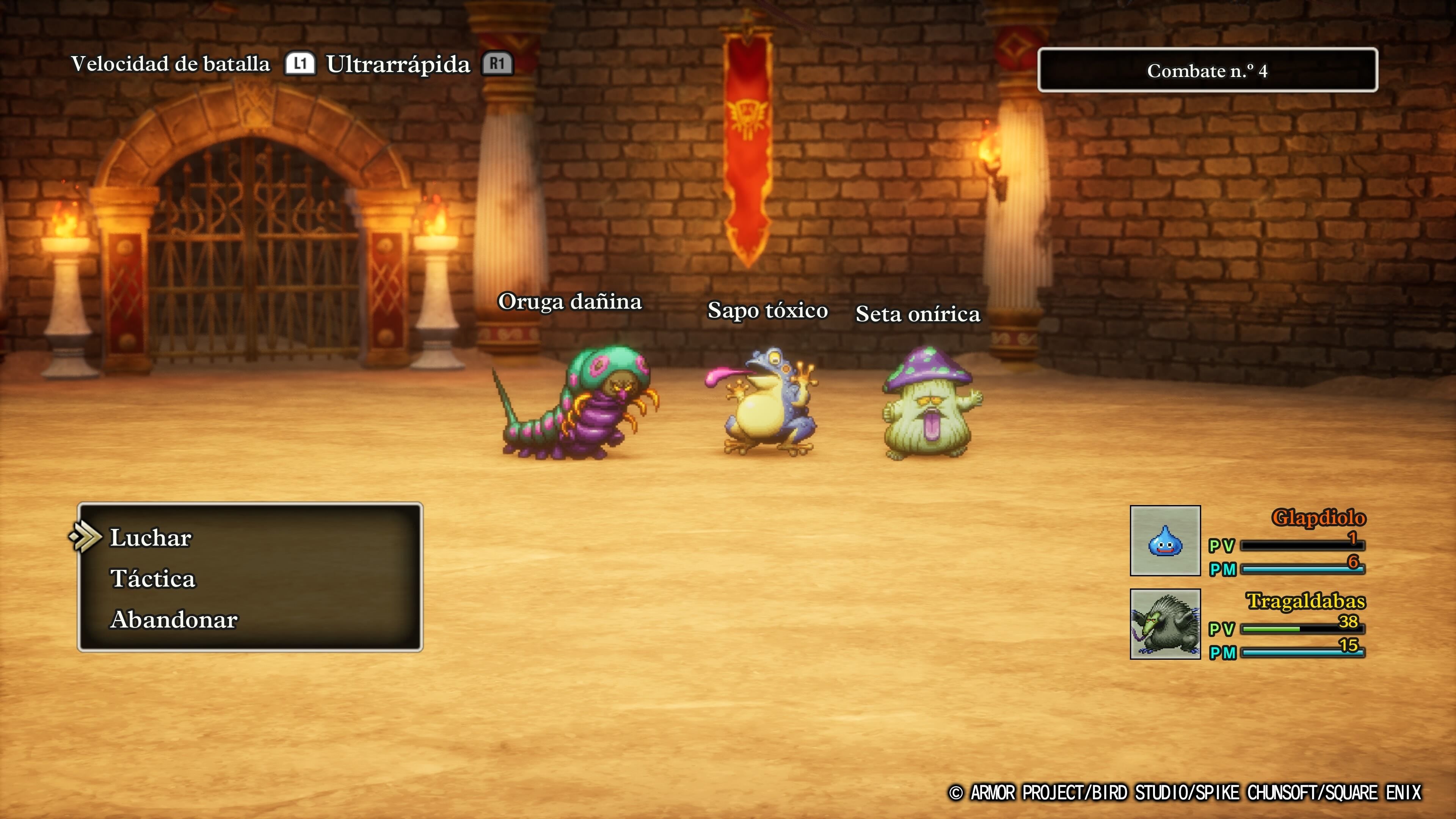 Algunas de estas características no estaban de base en el juego original de NES y se fueron ampliando en las múltiples versiones posteriores. Aquí las tenemos todas, como la presencia de las arenas de monstruos, que nos permiten mandar a luchar a las criaturas reclutadas, algo que seguramente te recuerde a la serie Dragon Quest Monsters. Se trata de batallas 3vs3 en varias rondas que nos hacen subir de rango y obtener mayores recompensas. Es algo completamente opcional en la aventura, pero la tarea de recolección añade mucho valor y está bien implementada, fomentando que explores hasta el último rincón, puesto que podrías encontrar un monstruo en cualquier lado.