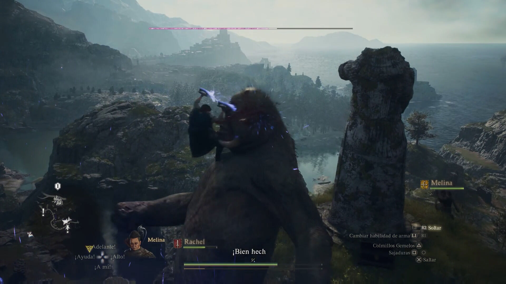 Esto, el que estas enormes bestias habiten el mundo del mismo modo que los enemigos más pequeños y los personajes no jugadores, y que todos estos elementos interactúen con las físicas y los sistemas de la simulación, es lo que genera momentos increíbles continuamente. Que un minotauro pueda asaltar una ciudad, que en medio de una batalla contra un gólem pueda aparecer una quimera, que un ogro nos lance los trasgos que han salido de su escondite, que un cíclope se tropiece y se quede formando un puente entre dos riscos, o que un grifo salga volando con nosotros encima y nos lleve a zonas del mapa que ni siquiera habíamos descubierto. Puede parecer una exageración, pero no lo es: Dragon’s Dogma 2 nos ha dado con sus combates algunos de los mejores momentos que hemos vivido nunca en un juego de acción.