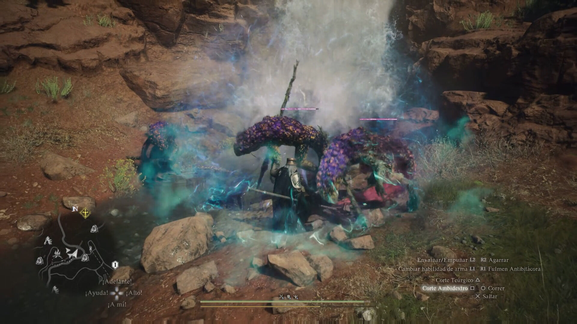 Pero todo eso lo soportan las consolas actuales más o menos. Si bien no llega a los problemas que tuvo el primer juego en su estreno en PS3 y Xbox 360, Dragon’s Dogma 2 en PlayStation 5 apunta a los 30 fotogramas por segundo, pero de manera frecuente la fluidez es inferior, sobre todo en las grandes urbes y en momentos en los que se agolpan varios enemigos grandes. Esto no nos ha impedido disfrutar del juego ni seguir la acción, pero hay veces en las que el caos intrínseco a ciertas situaciones, con todos los efectos que se desatan en la pantalla, unido a las bajadas de rendimiento, afectan negativamente a la experiencia.