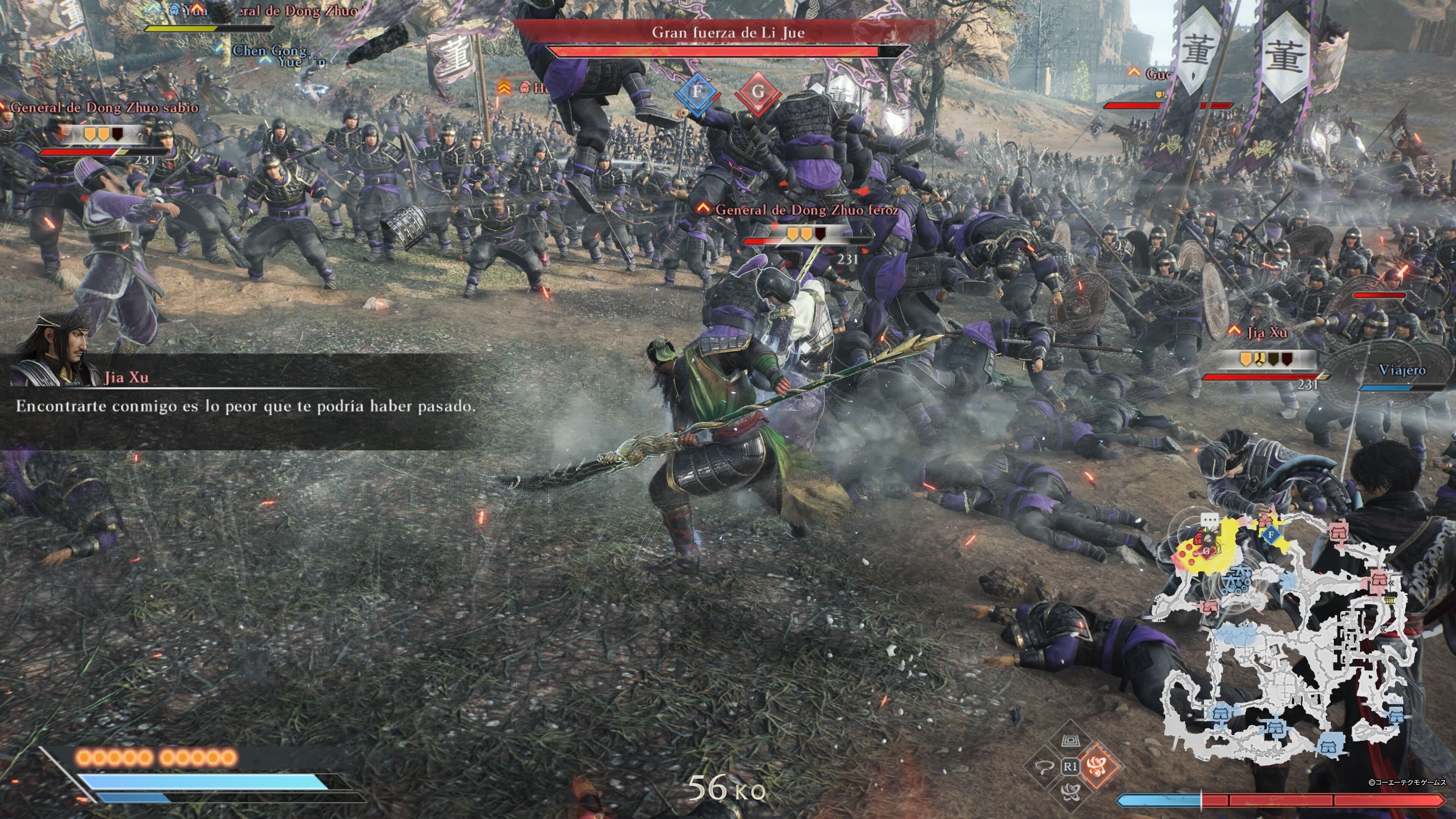 Finalmente, cabe señalar que estamos, a todos los efectos, ante un musou de nueva generación. En términos puramente visuales no hay ningún otro título del género que se acerque al espectáculo gráfico que aquí nos ofrecen, con unos modelados más detallados que nunca, unos escenarios más vistosos y, sobre todo, un número de personajes en pantalla completamente abrumador que no ha dejado de sorprendernos con el paso de las horas. La sensación de guerra y escala que se ha conseguido en esta ocasión es una auténtica pasada, sumergiéndonos de lleno en todas y cada una de sus batallas, algo que se ve acompañado por una buena calidad de imagen y un rendimiento impecable en consolas, donde existen diversos modos gráficos para ajustar la experiencia a las necesidades de cada jugador.