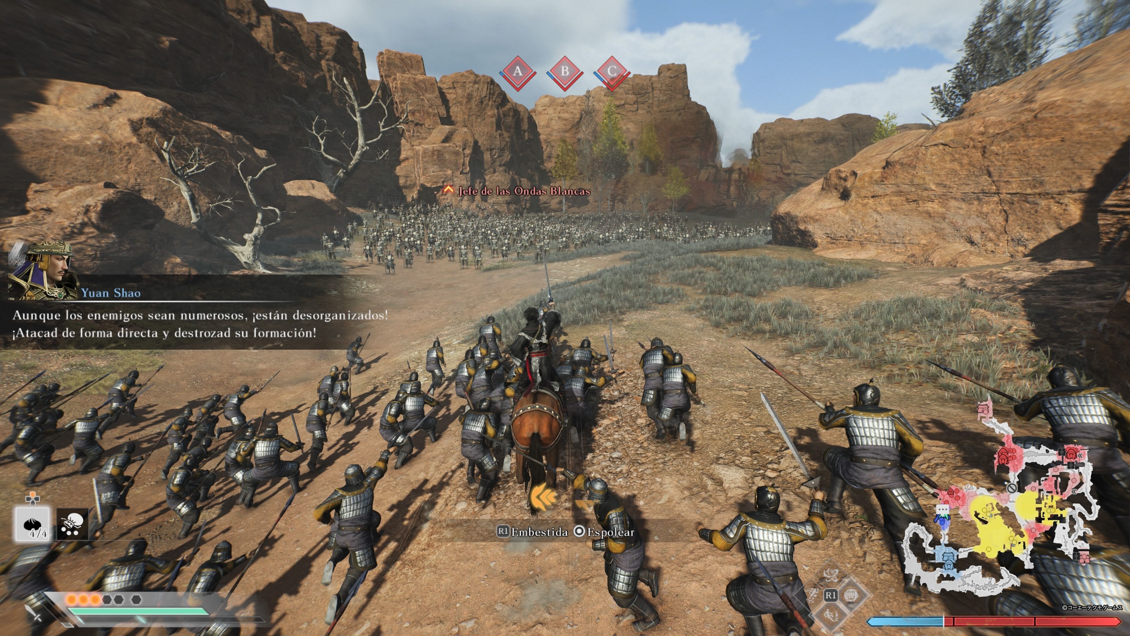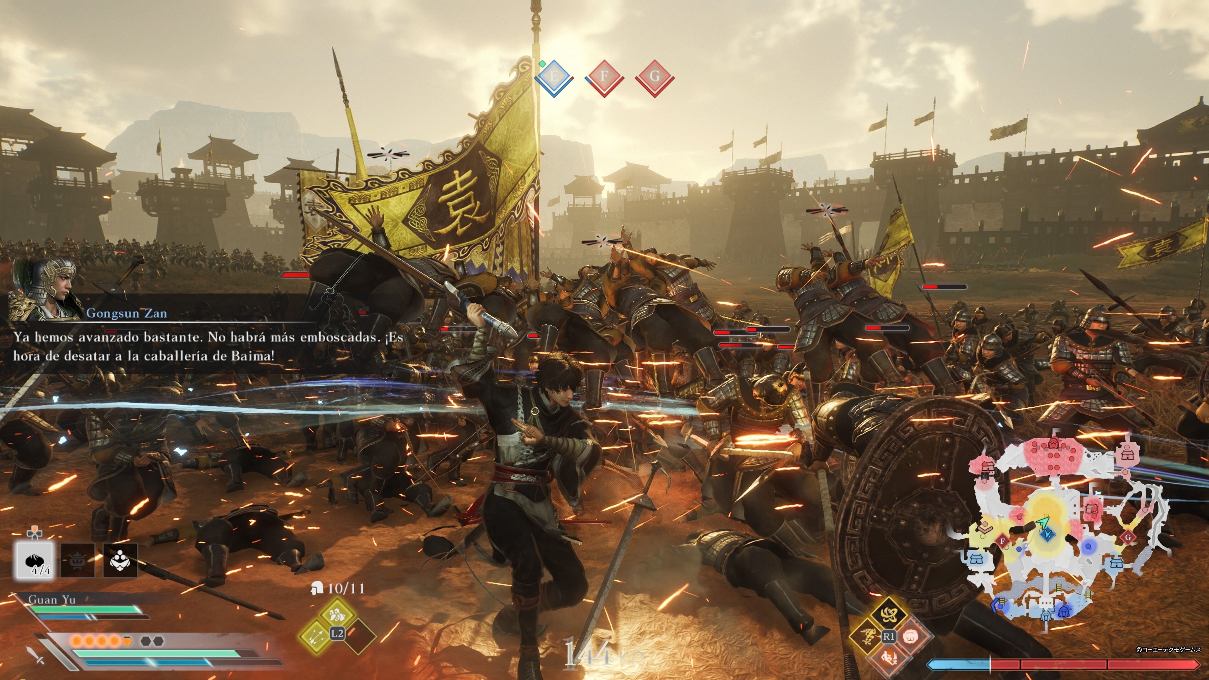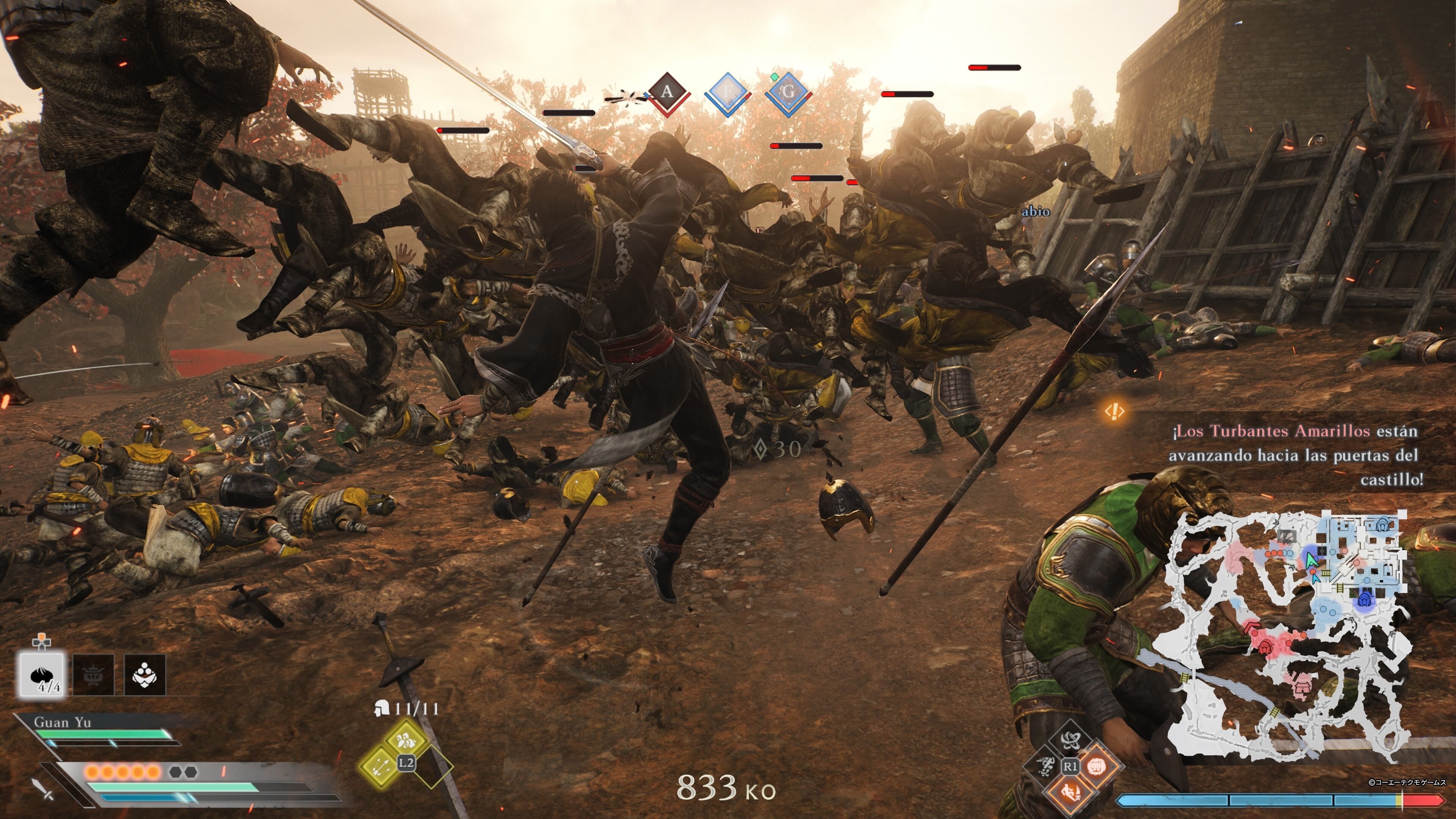 Sin embargo, donde Dynasty Warriors: Origins destaca y supone una enorme evolución respecto a cualquier otro musou es en el campo de batalla. Como siempre, estas se desarrollan en unos mapas de tamaño considerable y en ellas además de tener que liquidar a miles de enemigos (literalmente) vamos a tener que cumplir diversos objetivos tácticos si no queremos fracasar.