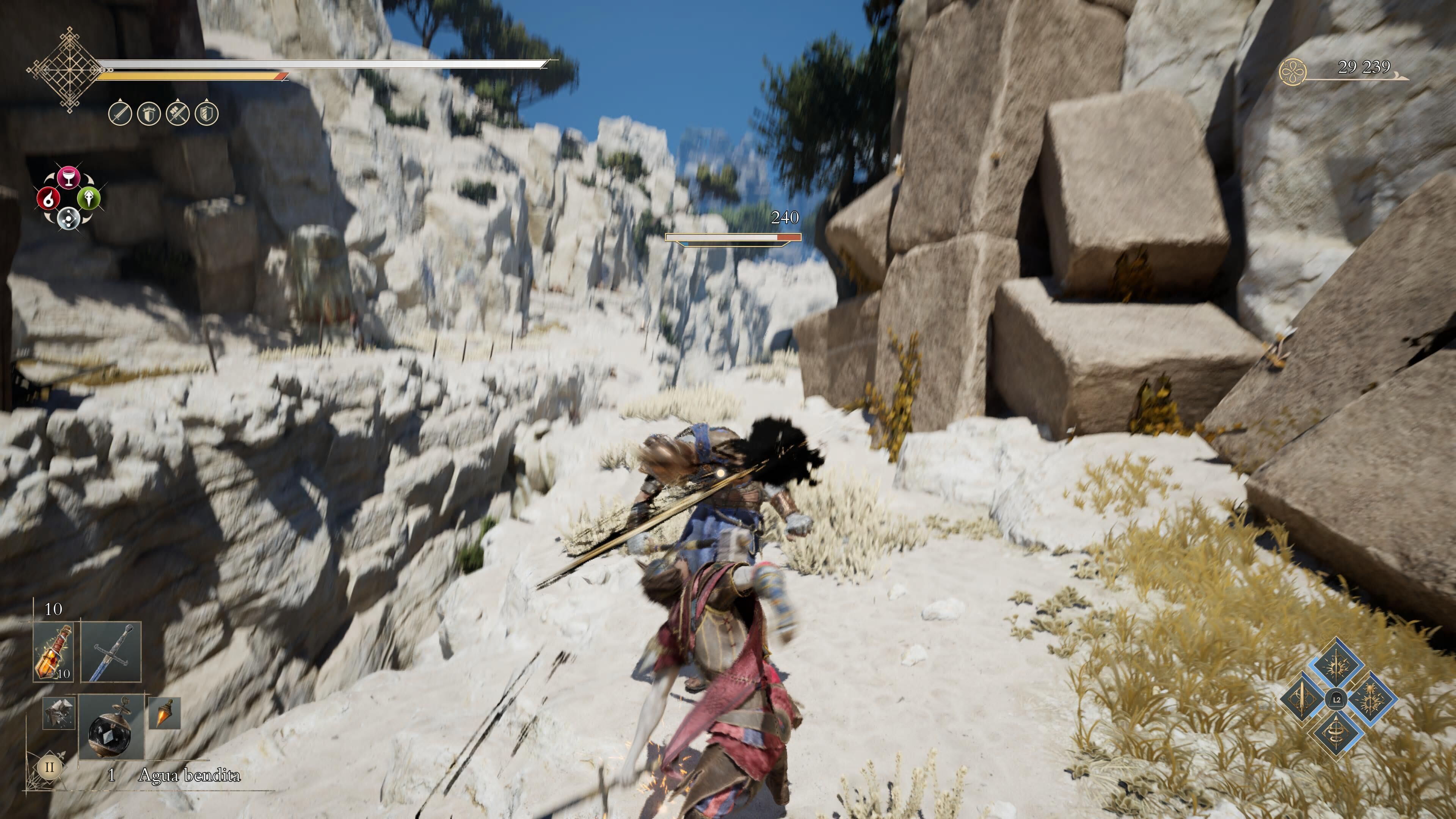 Con esto no queremos decir que sea imposible jugar con armas pesadas, ya que si construimos adecuadamente a nuestro personaje podemos llegar a encontrar formas de sacarles partido, pero no nos ha parecido especialmente divertido jugar con ellas. Las ligeras sí son algo más satisfactorias de controlar, pero hacen tan poco daño que las batallas contra jefes tienden a eternizarse. Curiosamente, no se ha añadido ninguna que podamos usar a distancia, lo que hace que lidiar con enemigos como arqueros o magos se torne en algo un tanto engorroso.