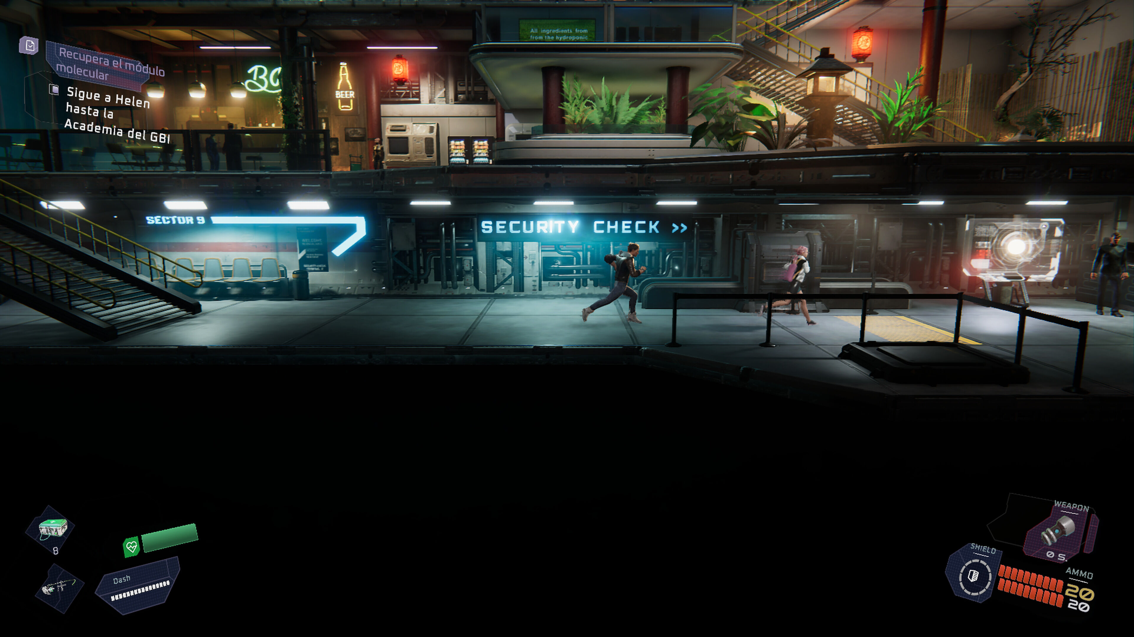 No todos estos elementos están bien ejecutados ni tiene el mismo peso. Por ejemplo las plataformas aquí pasan a un segundo plano, bastante automáticas y sin la dificultad del original. Es más una mecánica para dar pie a la exploración: a veces hay que saltar a un saliente, agacharse para entrar en un conducto, etc. No es un RPG ni un point'n click, pero sí podremos charlar con personajes para saber nuestro destino, conseguir algo que nos permita avanzar y consultar sobre diversos temas. En estos aspectos jugables Flashback 2 todavía aguanta el tipo y engancha, en parte porque la ambientación y la música son correctas. Si te gusta el ciberpunk, encontrarás algunas pequeñas localizaciones inspiradas que pueden añadir interés a la experiencia.