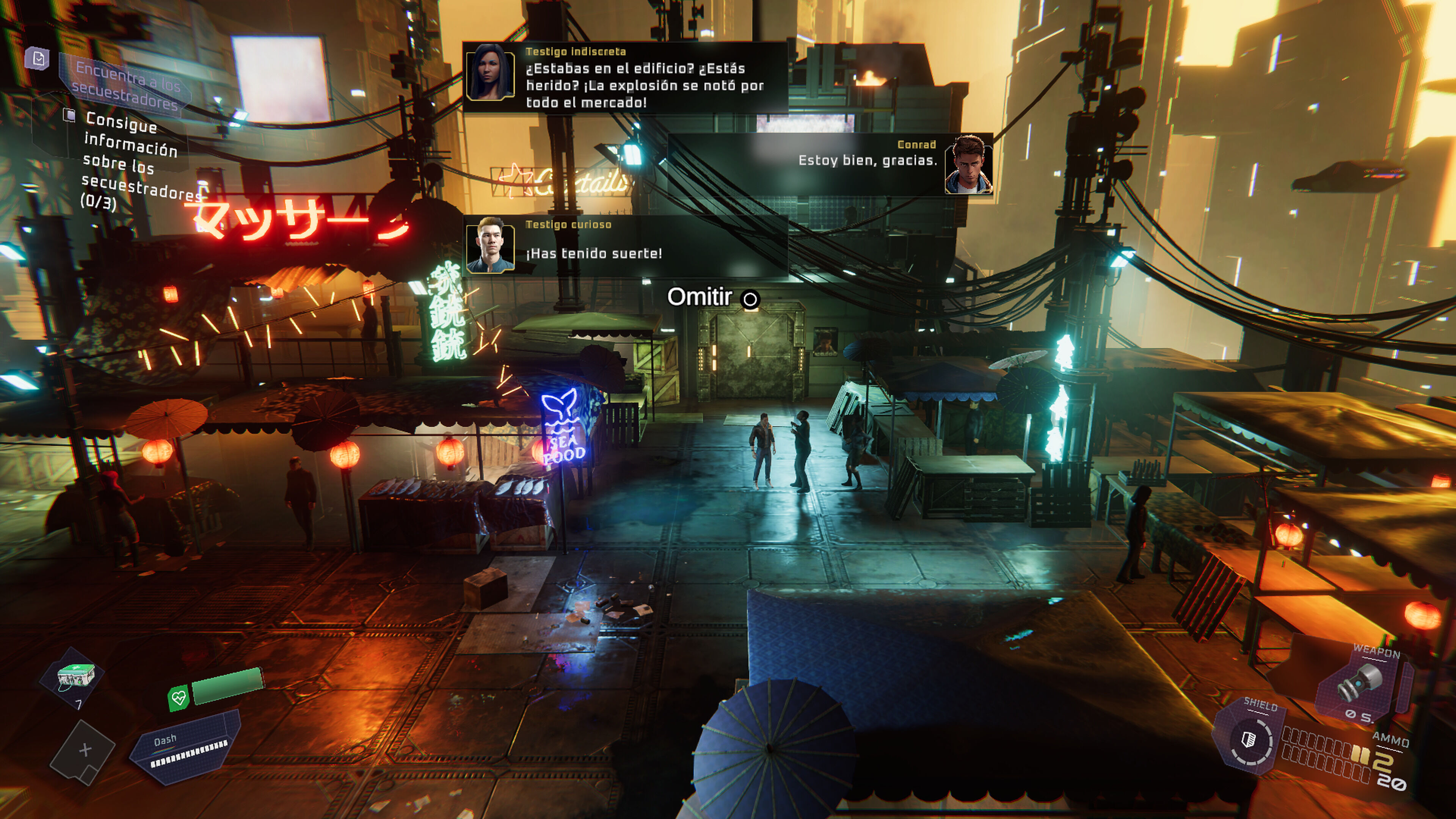 Lamentablemente Flashback 2 pincha en el núcleo de su jugabilidad: los tiroteos. Y suelen ser numerosos, quizás para romper la monotonía de la parte narrativa, pero a nosotros sinceramente nos han sobrado. Con nuestra pistola de disparos infinitos –con una recarga que se eterniza- y modificaciones puntuales para resolver algunas situaciones, daremos buena cuenta de los enemigos que nos vamos a encontrar cuando el sigilo no es una opción. Hay ligero autoapuntado, un escudo temporal –ya que no está planteado para utilizar coberturas, aunque si el entorno lo permite podrías jugar un poco con ellas- y alguna opción más, pero se siente simplísimo, incómodo y arcaico.