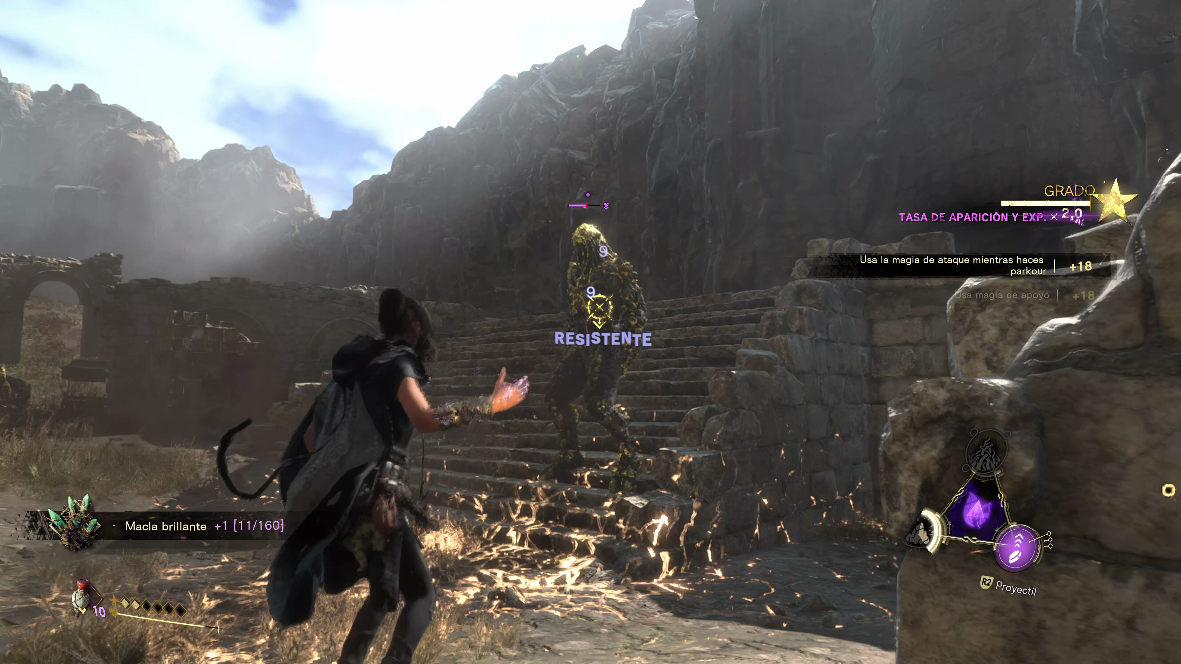 A esto hay que sumarle un medidor que podemos rellenar a medida que combatimos y que nos permite desatar nuestro sortilegio definitivo, la existencia de varios conjuntos de magias que cambian por completo nuestra forma de jugar y el atributo elemental de nuestros ataques, y la posibilidad de realizar parkour mágico para ejecutar espectaculares esquivas y reposicionarnos, algo que está limitado por un indicador de resistencia que se recarga automáticamente cuando no lo usamos.