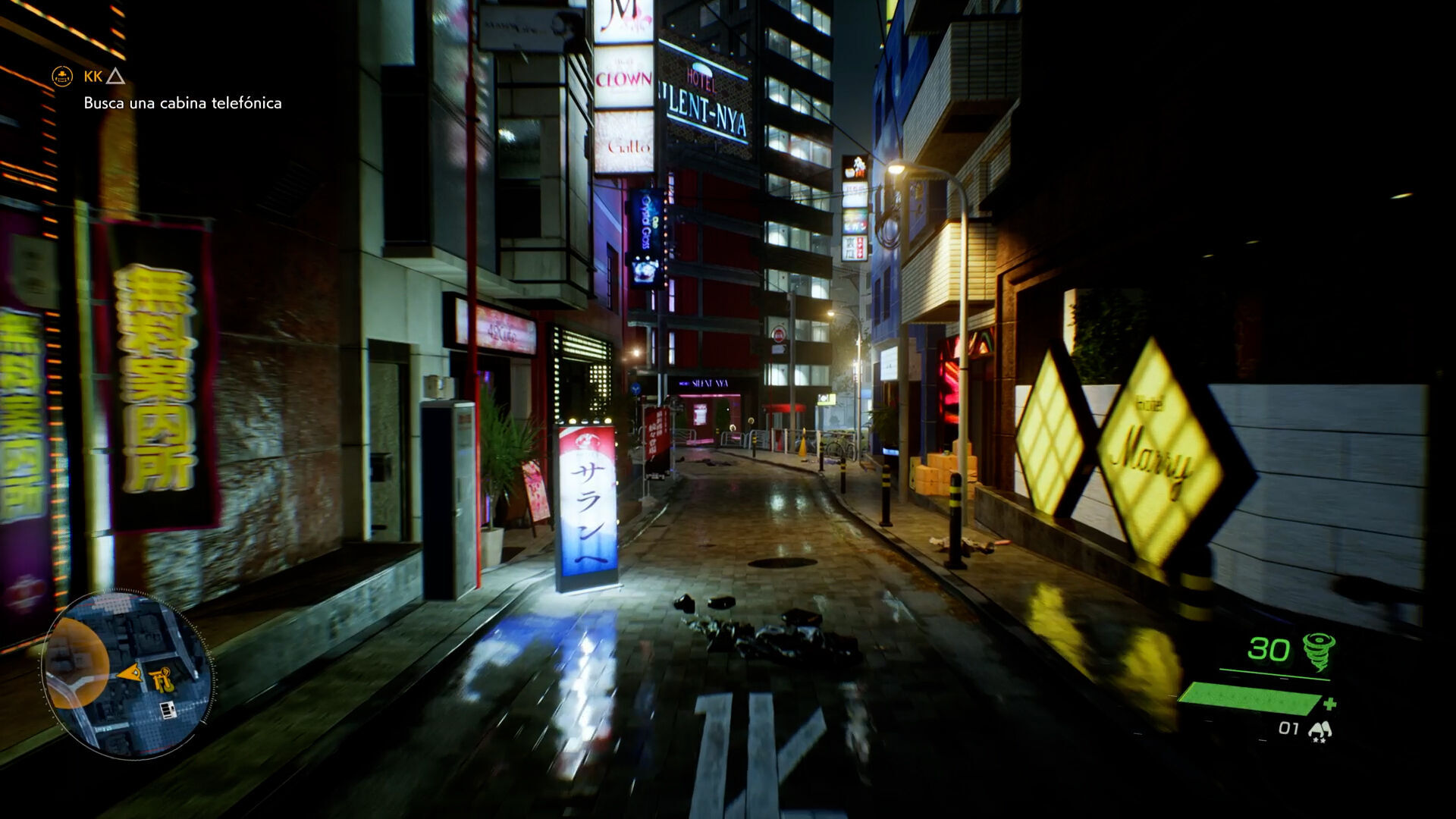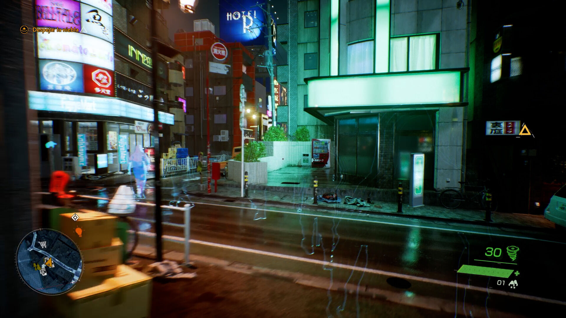 Pero como decíamos, moverse por el mundo es un placer a poco que te guste la ambientación que propone. Gran parte de la culpa la tiene la detallada recreación de Shibuya. Muchas veces nos hemos visto moviéndonos por los escenarios como si estuviéramos jugando, en vez de a una aventura de acción, a una aventura narrativa en primera persona, lo que mal llamamos walking simulator; andando pausadamente, fijándonos en los escaparates, comprobando qué habrá en tal callejón o qué encontraremos detrás de tal templo, yendo a zonas por las que el juego no nos obliga a pasar y abriendo todas y cada una de las puertas y armarios de las localizaciones que visitamos. De hecho, el juego promueve este avance pausado de varias maneras.