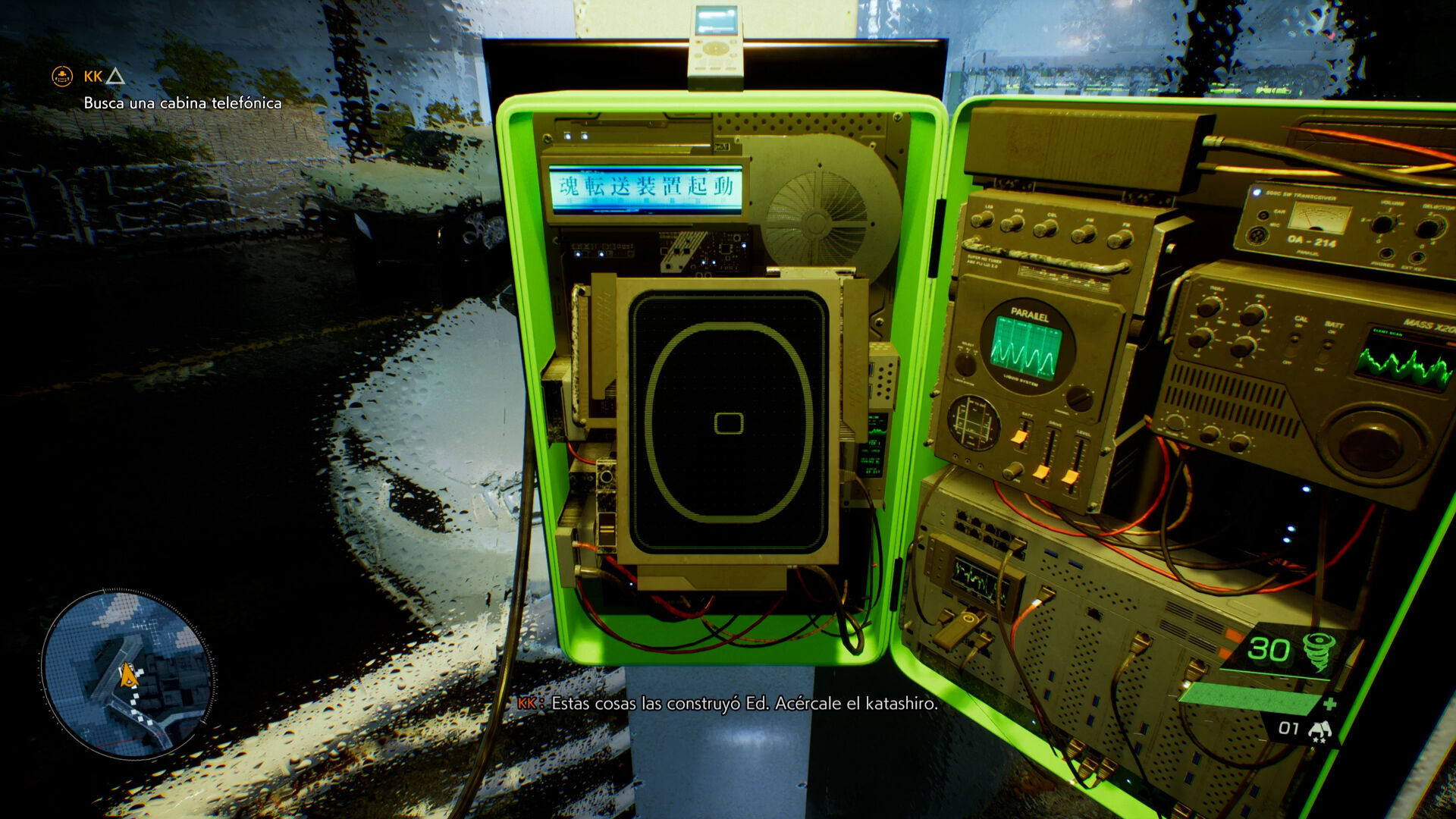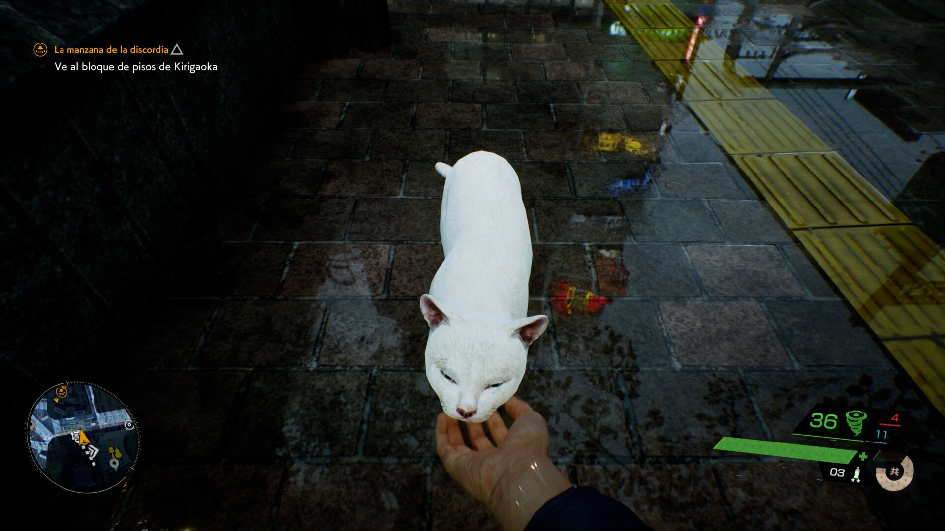 A esa presencialidad, a ese estar en Shibuya que mencionamos antes, contribuye muchísimo el paisaje sonoro. Mientras andamos por las calles escuchamos la música de un local de jazz que hemos dejado a mano izquierda, y desde arriba nos llega el sonido del televisor que un vecino ha dejado encendido antes de desaparecer. Las gotas de la lluvia nos rodean y quizá el ladrido de un perro que escuchamos en la lejanía nos conduzca a un coleccionable. En la partida es cierto que la banda sonora se usa poco y pasa algo desapercibida, pero la música que se puede comprar a los nekomatas se puede reproducir de fondo mientras exploramos; son pistas de géneros variados y algunas de ellas geniales. El doblaje al español es bueno, pero que el japonés venga activado por defecto es una declaración de intenciones: el doblaje original es excelente y hace mucho por sumergirte aún más en la experiencia.
