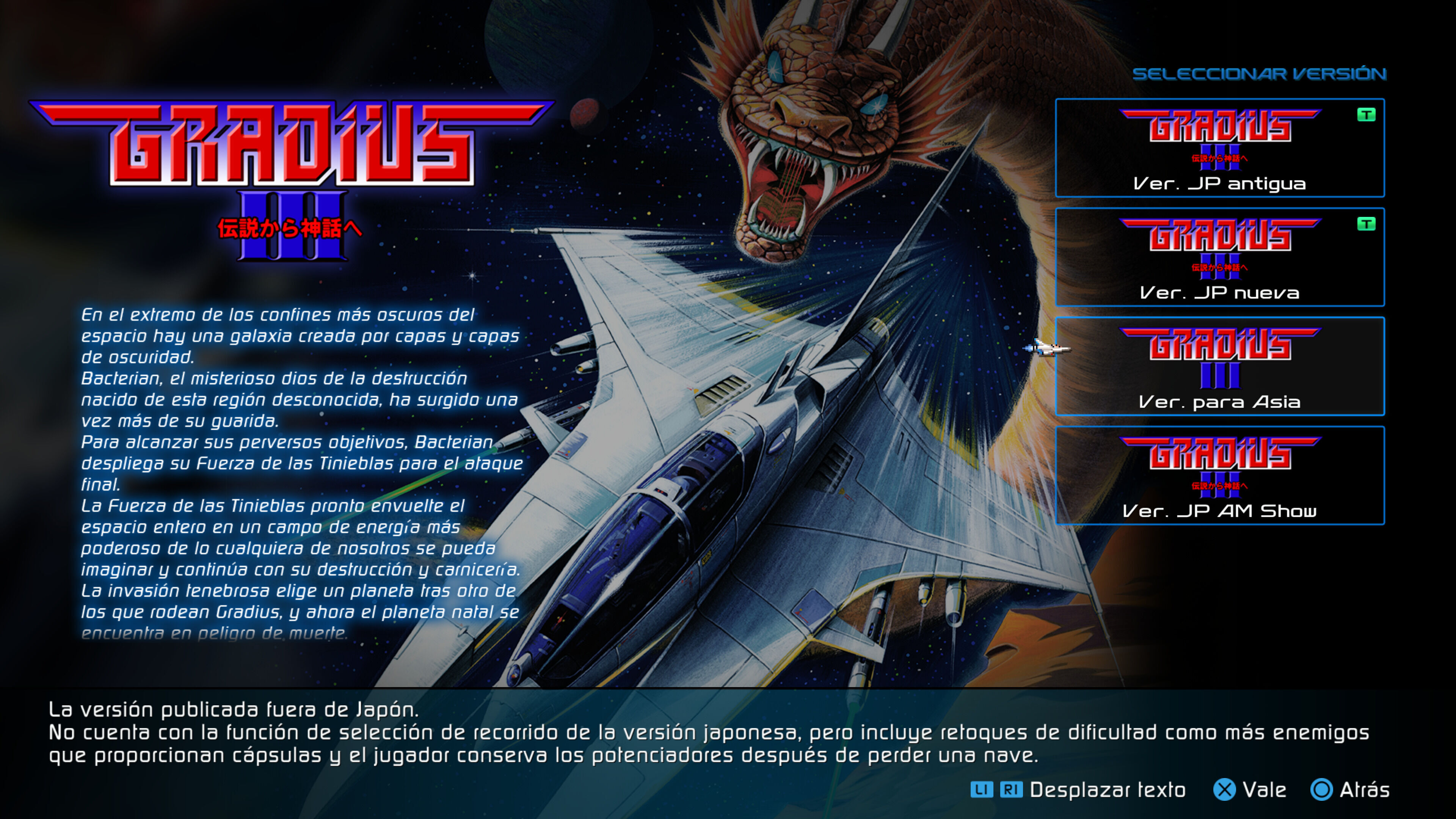 Sí, desde su anuncio se echó en falta Gradius IV, Gaiden e incluso V y ReBirth si cruzamos la fecha de los 2000, por no hablar de ampliar las versiones a los sistemas domésticos. Pero a fin de cuentas, es un homenaje centrado en los orígenes, que además viene acompañado del puñado de opciones en calidad de vida que solemos encontrar en estas reediciones.