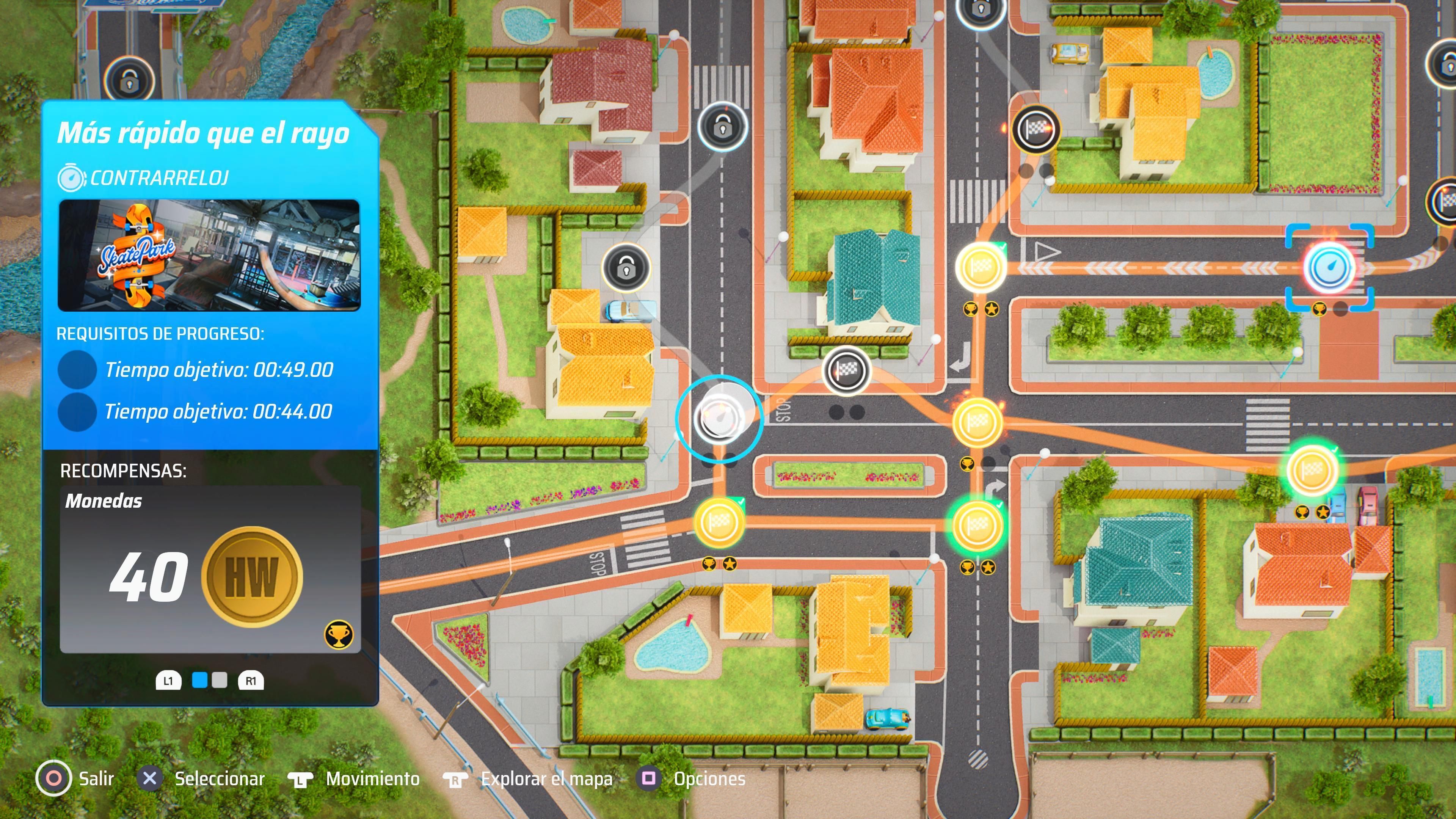 Hot Wheels Unleashed tiene un modo principal para un jugador que consiste en explorar un mapa con una red de pruebas que vamos desbloqueando. De esta manera si se nos da mal alguna prueba siempre se puede elegir otra ruta y continuar por otros nodos y quién sabe, hasta podríamos encontrar pruebas y recompensas secretas. Ya imaginarás qué puedes encontrar: carreras contrarreloj, competiciones para entrar en el podio o las fases "de jefe" que son más exigentes. Ganar trae premios que incluyen el dinero virtual y cajas de botín, porque claro, uno de los pilares de Hot Wheels es coleccionar vehículos de aspecto realista o estrafalario. Cada vehículo tiene características de velocidad, aceleración, control y potencia de frenada diferente, y una capacidad o tipo de turbo propio; si encuentras uno que te guste, siempre podrás mejorarlo y personalizar su aspecto con un editor bastante sencillo de colores.