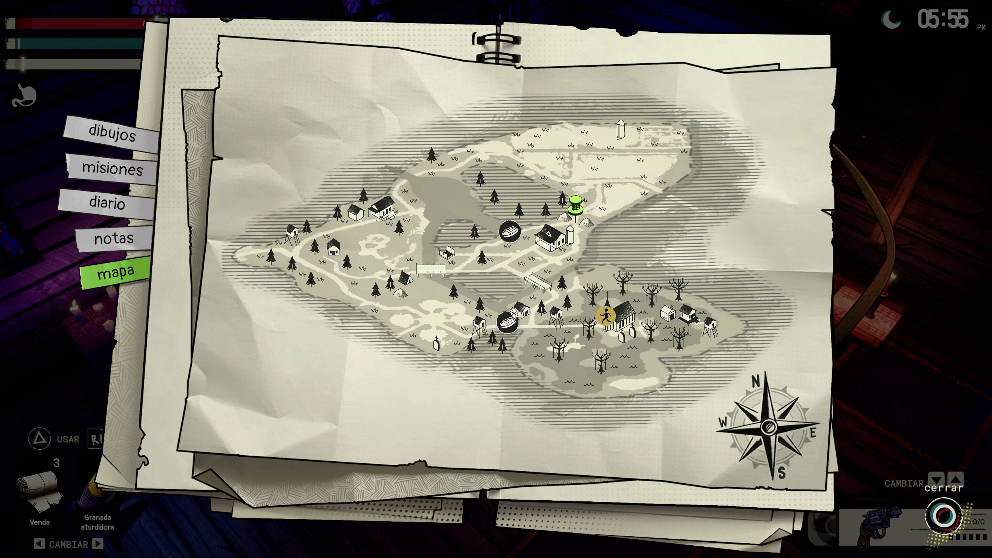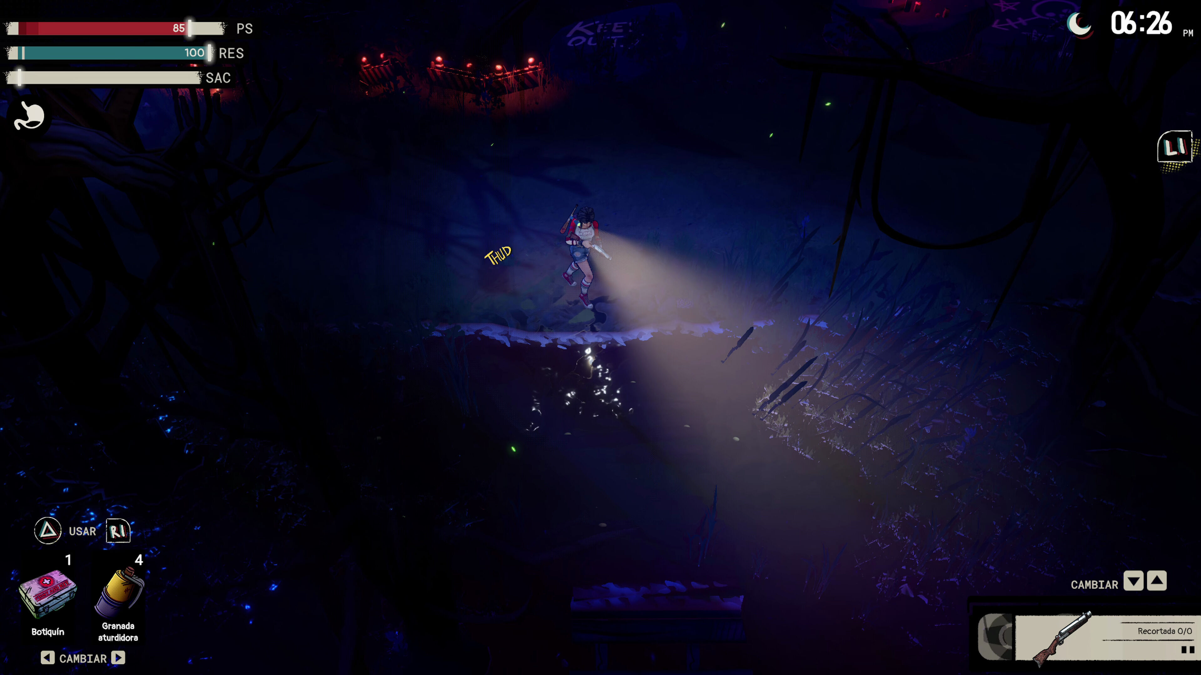 No obstante, la percepción final es que el esquema survival horror que plantea el juego en un inicio no parece cuajar con estas herramientas de gestión. Tienes un indicador de resistencia y hambre, pero su impacto no es tan notable como se podría haber esperado. Es decir, da la sensación de que el juego quería proponer más sensación de agobio, de supervivencia, pero se ha quedado a medio camino, sin definir bien sus objetivos.